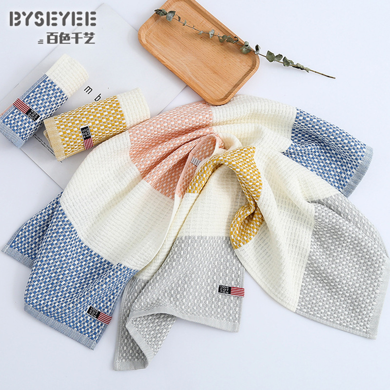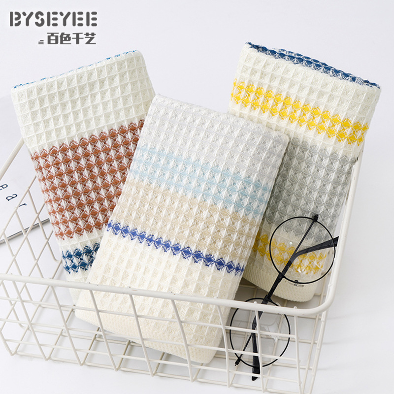 百色千艺厂家色纬蜂巢毛巾 批发柔软透气精梳棉子母纱毛巾洗脸巾