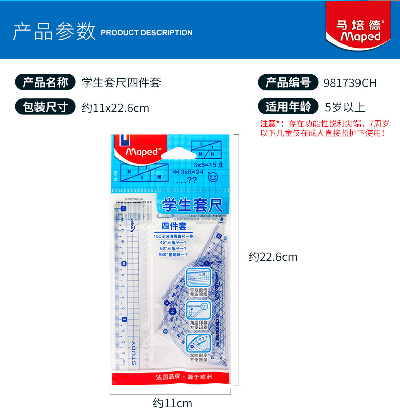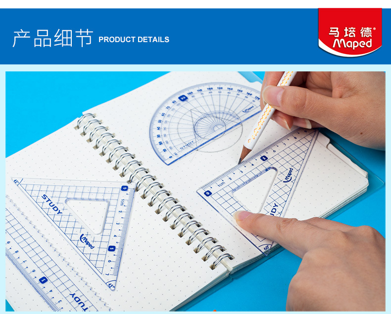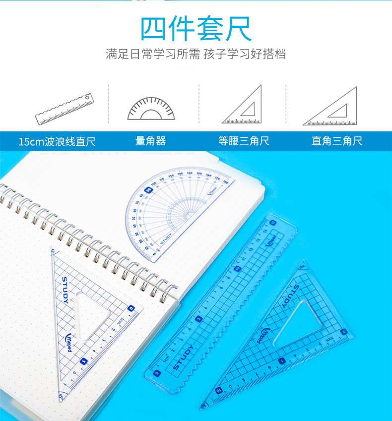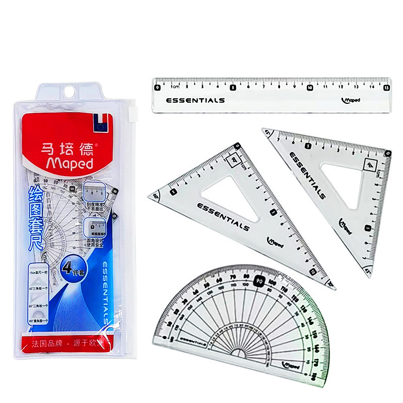 Ma Peide 다기능 눈금자 세트 초등 및 중등 학생을위한 4 피스 세트 특수 삼각형 눈금자 드로잉 눈금자 각도기스토어 가기