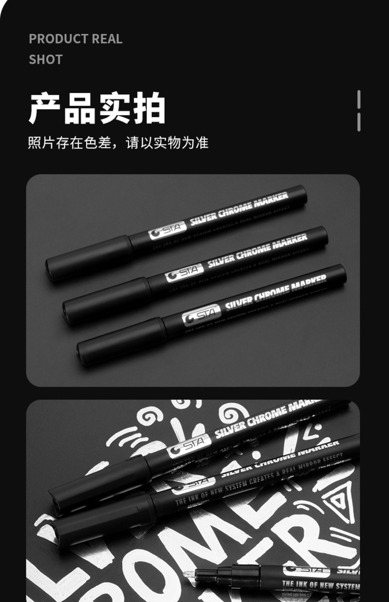 스타 미러 반사 전기도금 펜 금속 크롬 도금 사이트 마커 펜 고급 헤드 스톤 펜 타일 그리기 라인 낙서 페인트스토어 가기