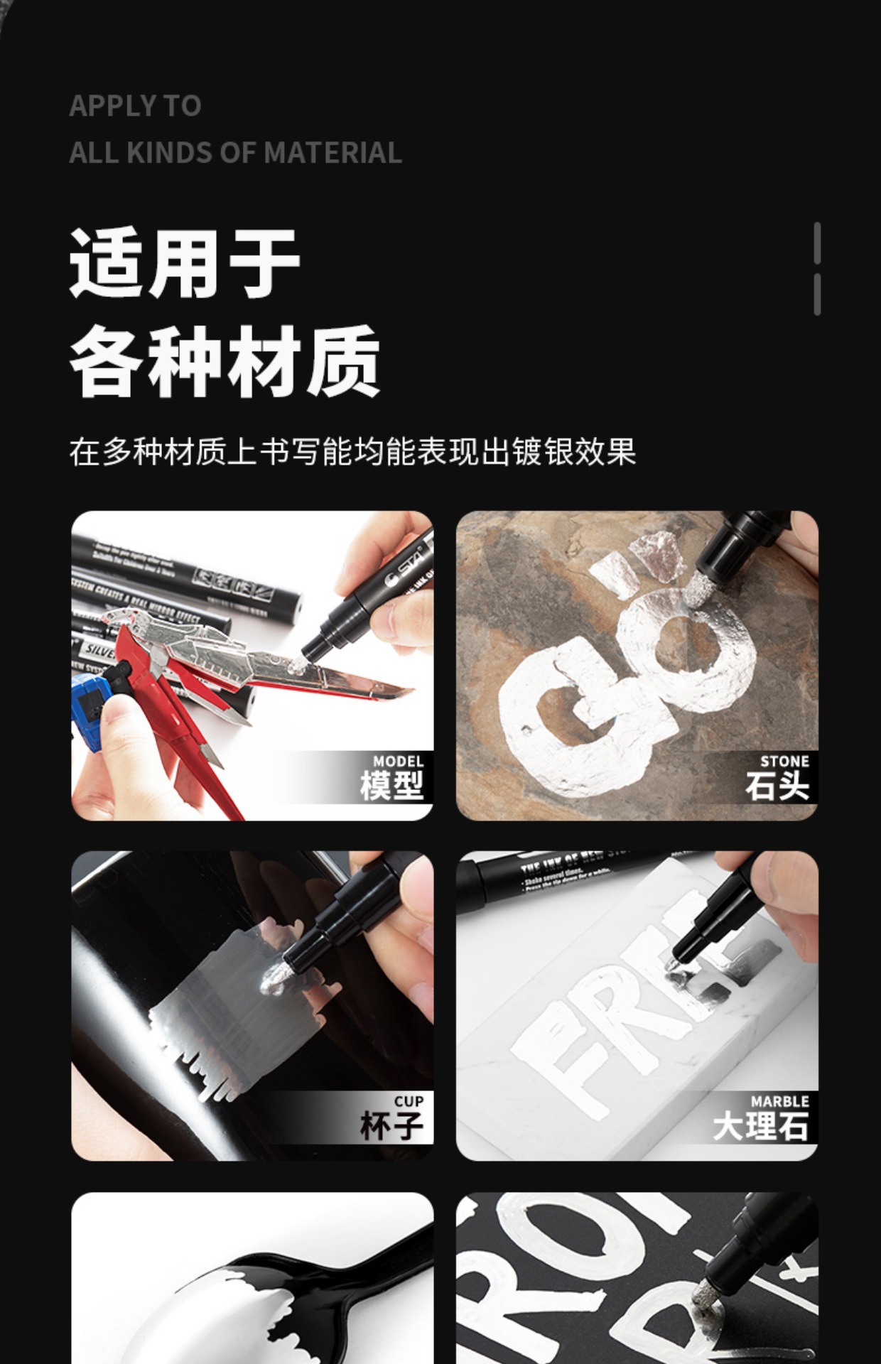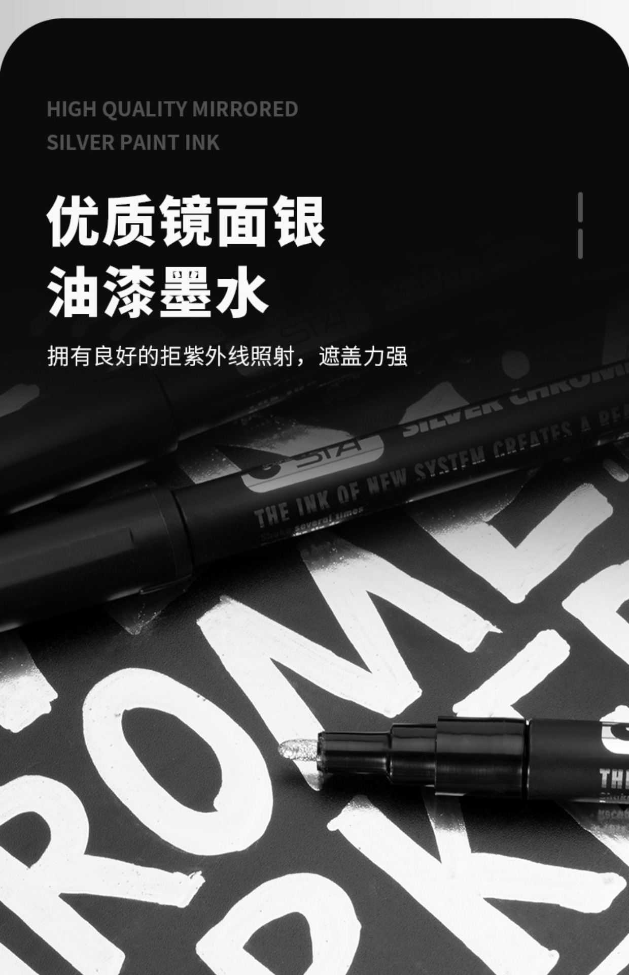 스타 미러 반사 전기도금 펜 금속 크롬 도금 사이트 마커 펜 고급 헤드 스톤 펜 타일 그리기 라인 낙서 페인트