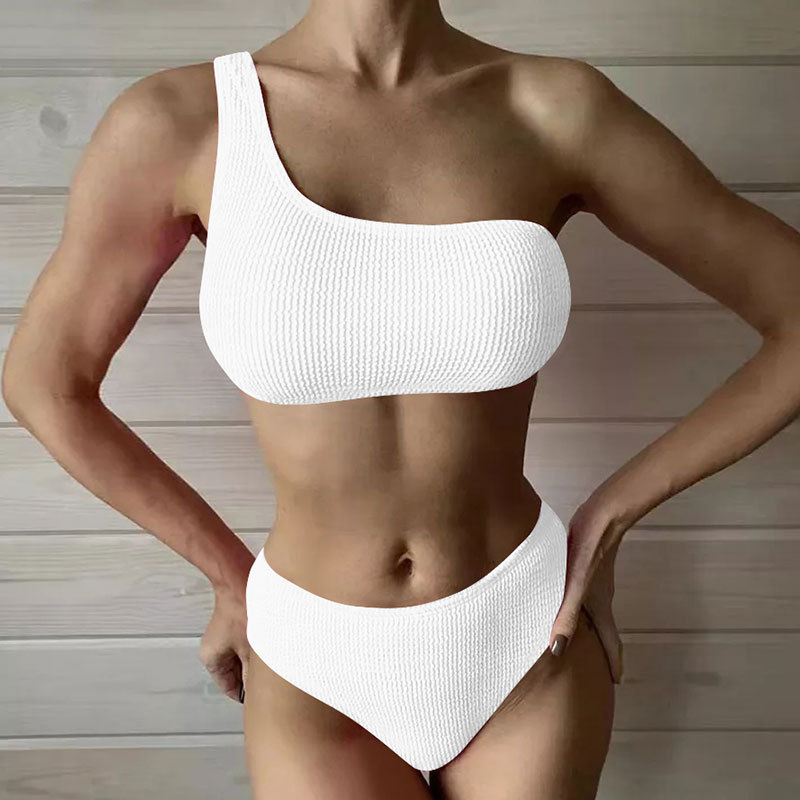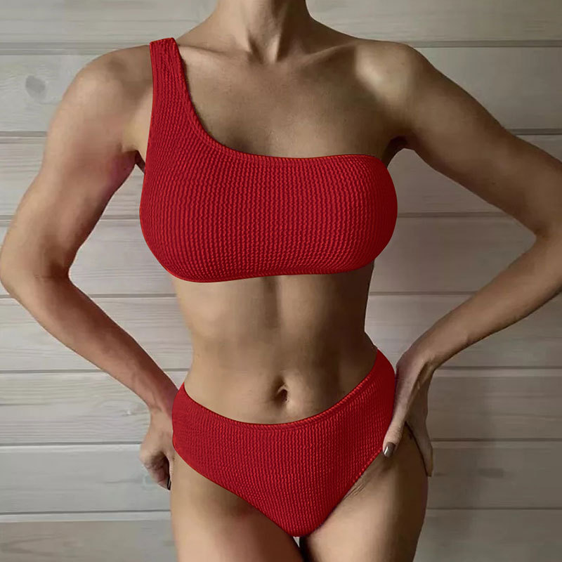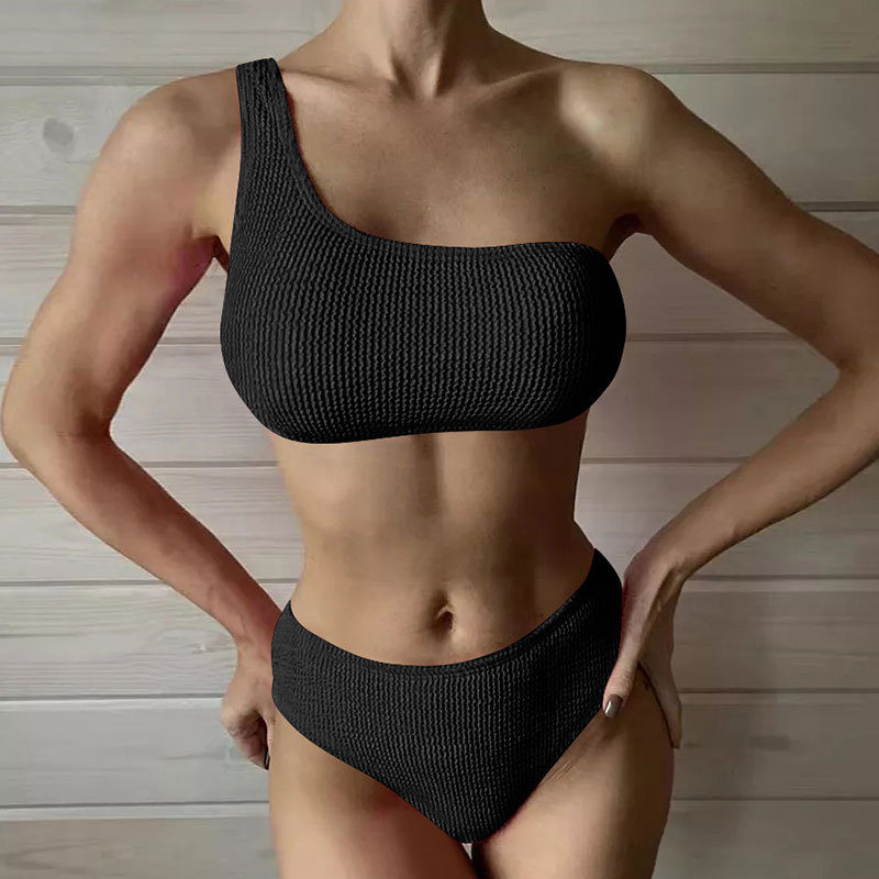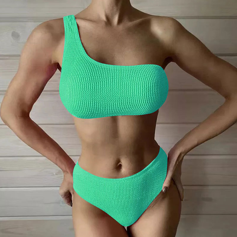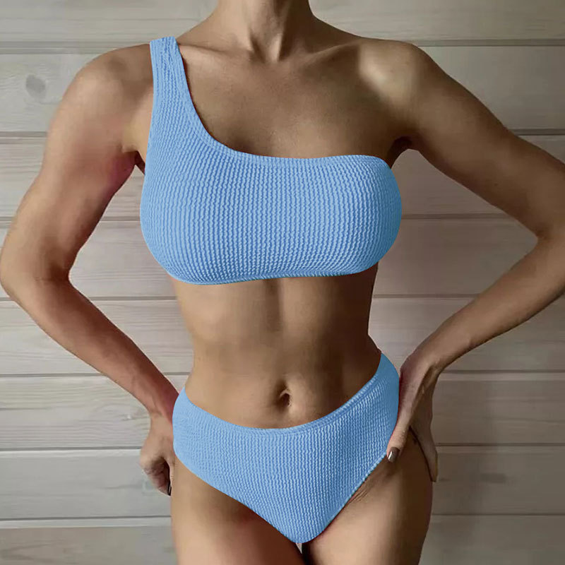바다 소리 수영복 대외 무역 새로운 섹시한 단색 분할 웨이브 천 어깨 수영복 여자의 2022 비키니