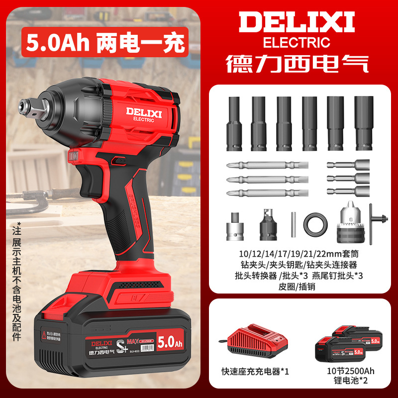 Delixi 브러시리스 전기 렌치 대토크 리튬 배터리 충격 렌치 프레임 작업자 전기 에어건 슬리브 자동 수리 타이어