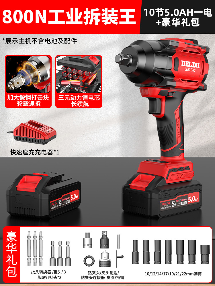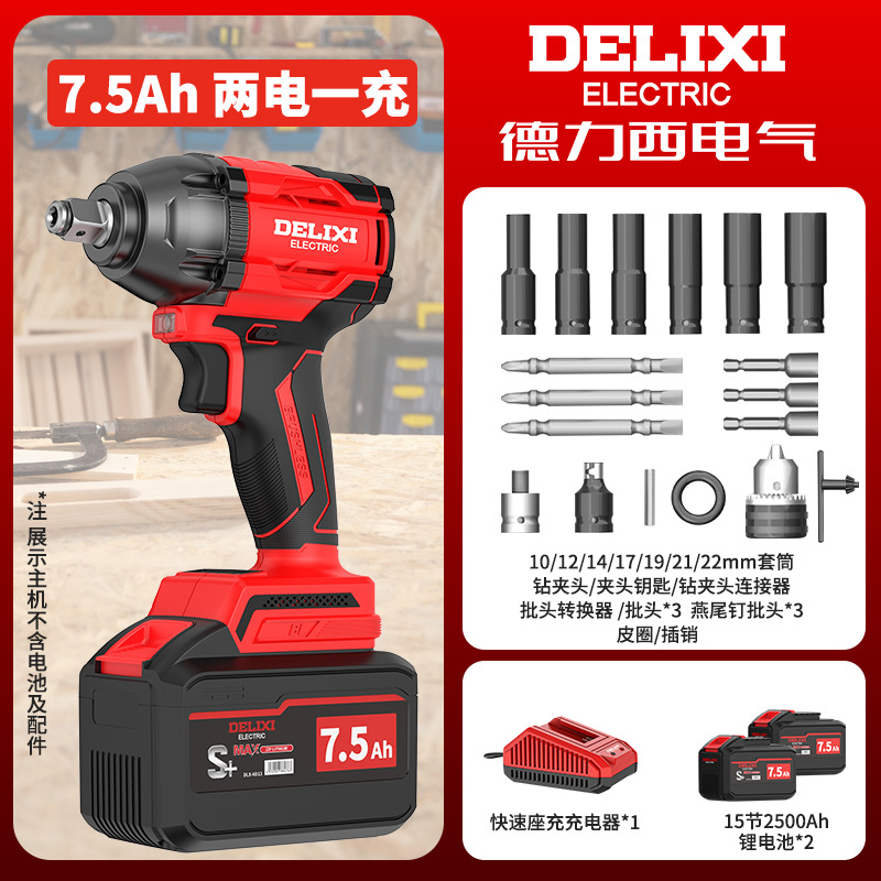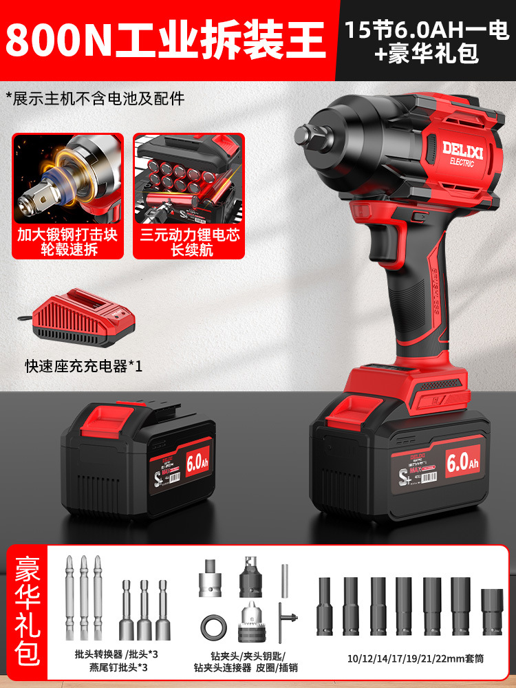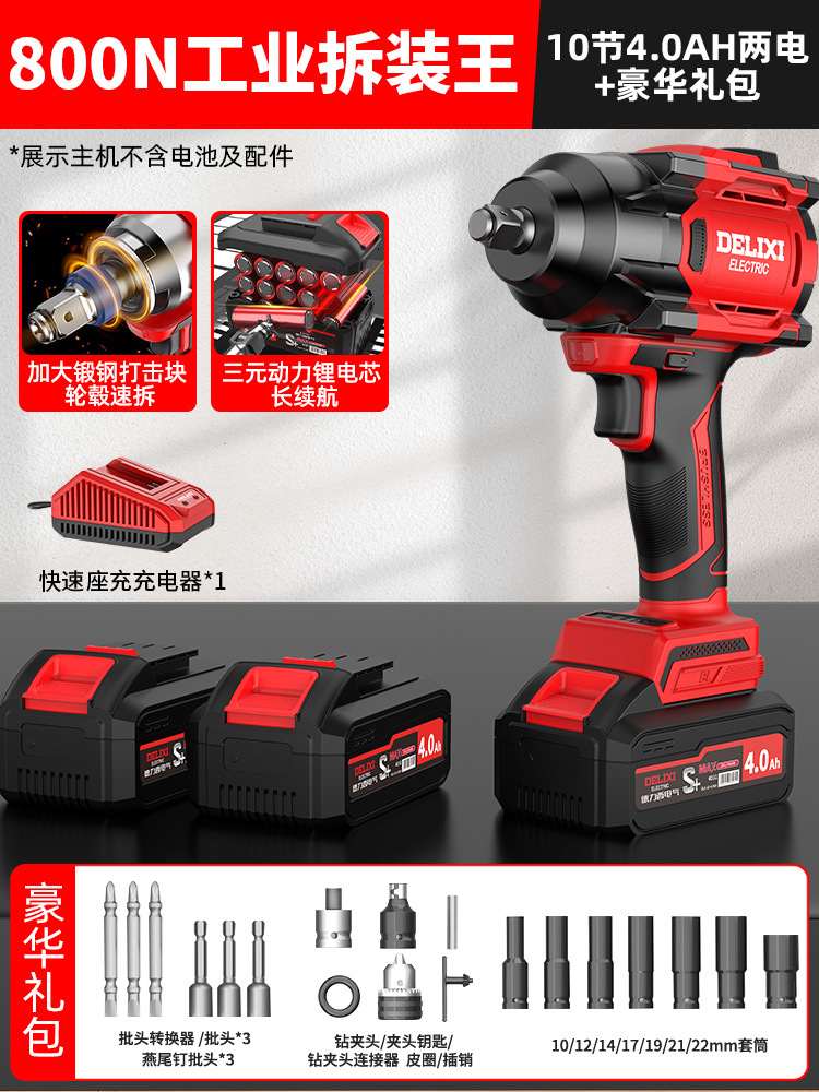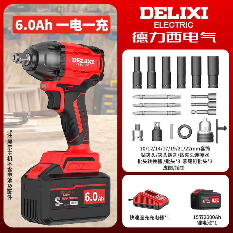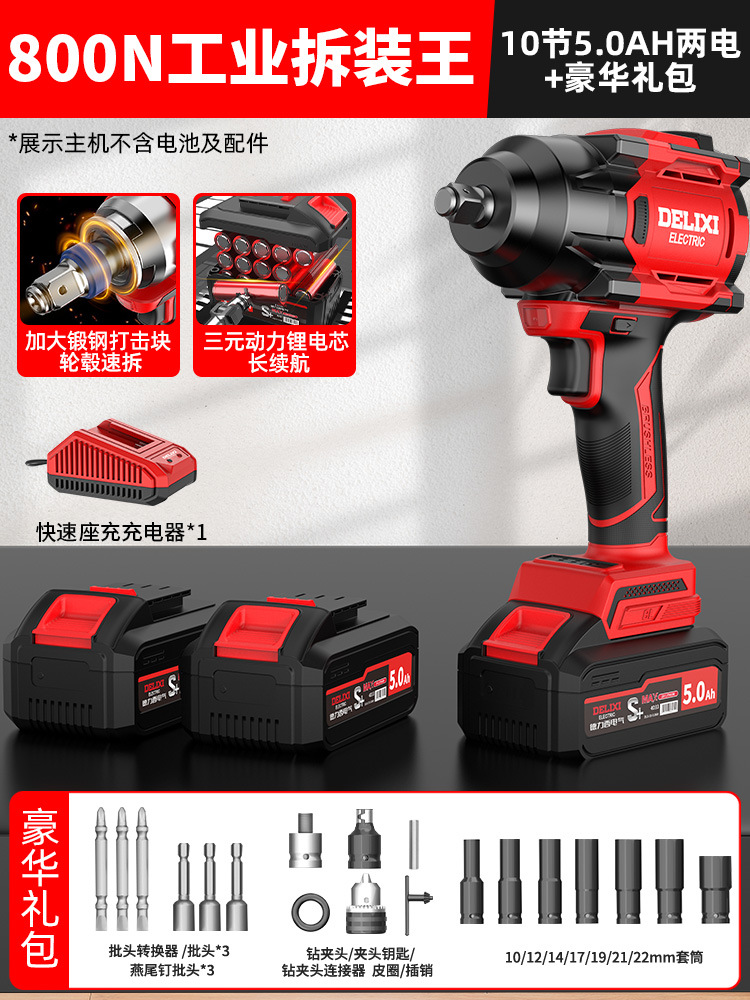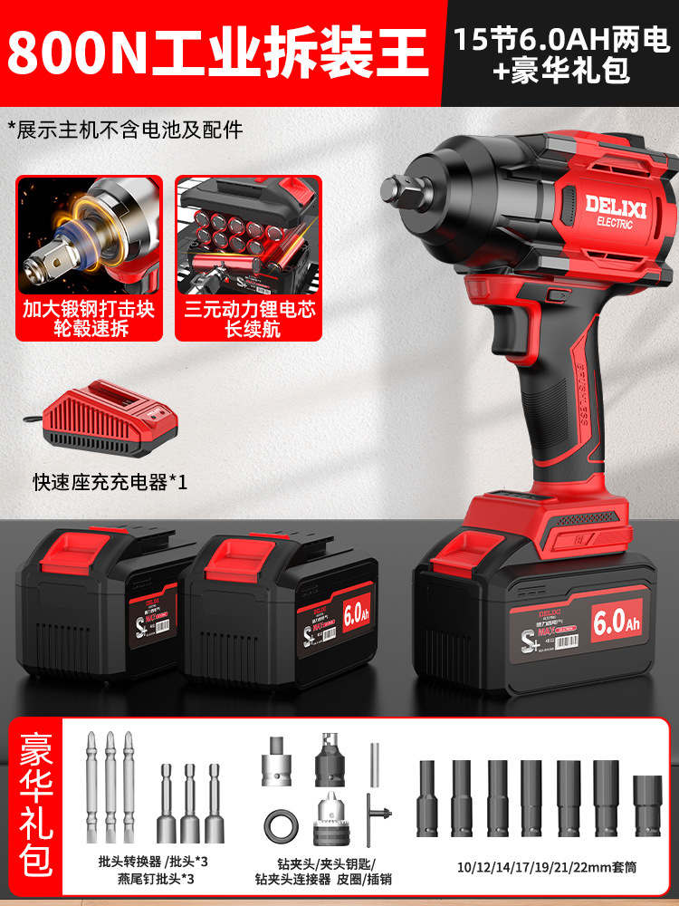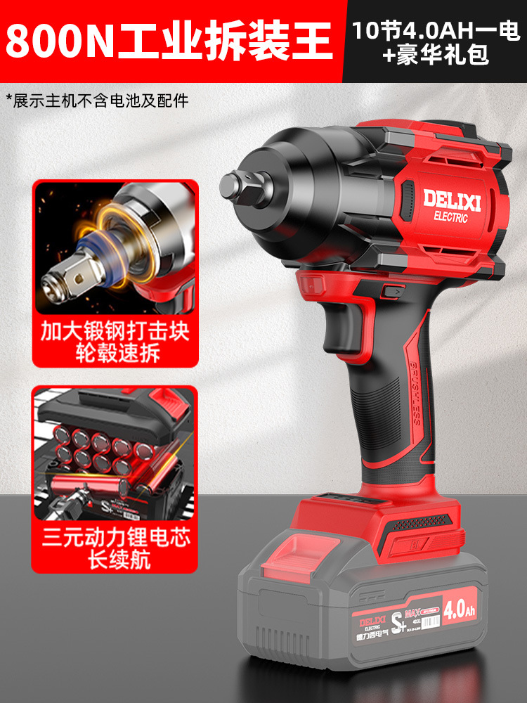 Delixi 브러시리스 전기 렌치 대토크 리튬 배터리 충격 렌치 프레임 작업자 전기 에어건 슬리브 자동 수리 타이어스토어 가기