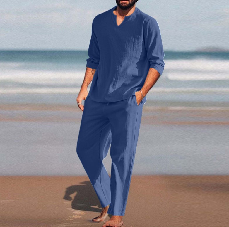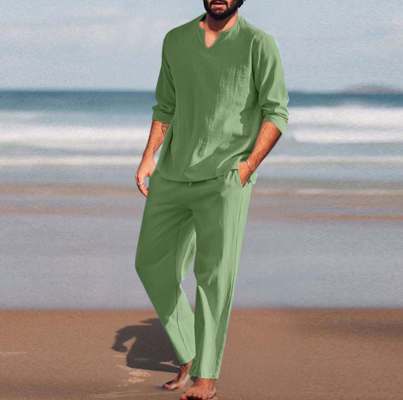2025 대외 무역 남성 여름 신작 비치 스타일 면 및 린넨 슈트