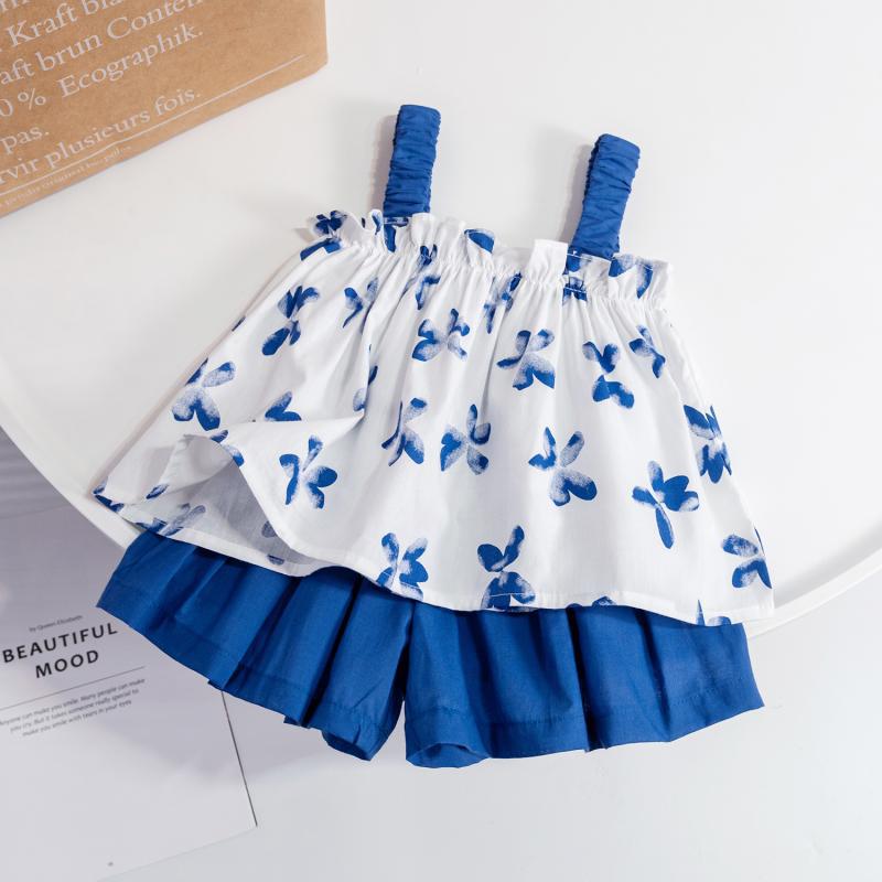 여아 슬링 세트 여름 여아 아기 소녀의 블루 플로럴 스커트 슬링 반바지 투피스 유행 의상