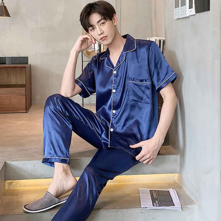 • S 다크 블루 # 짧고 긴 남성용 아이스 실크