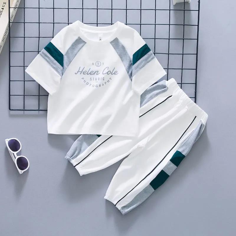 남아 여름 옷 세트 2023 새로운 한국 스타일 아기 잘생긴 느슨한 여름 어린이 반팔 스포츠 투피스 유행 세트