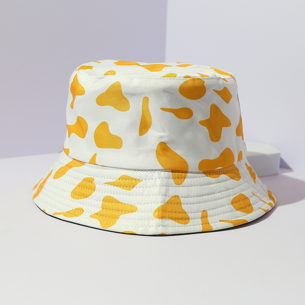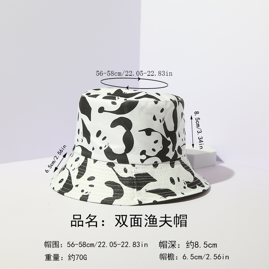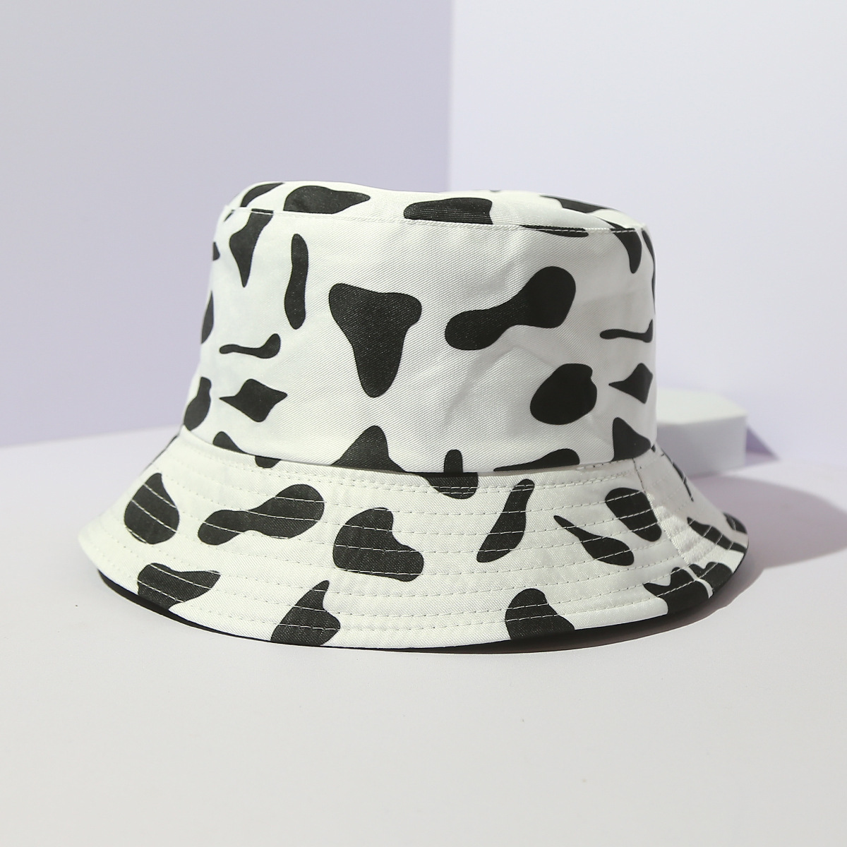 인기있는 봄과 가을 어부 모자 여성용 자외선 차단제 모자 암소 인쇄 양면 어부 모자 여성용 캐주얼 모자 남성용 분지 모자