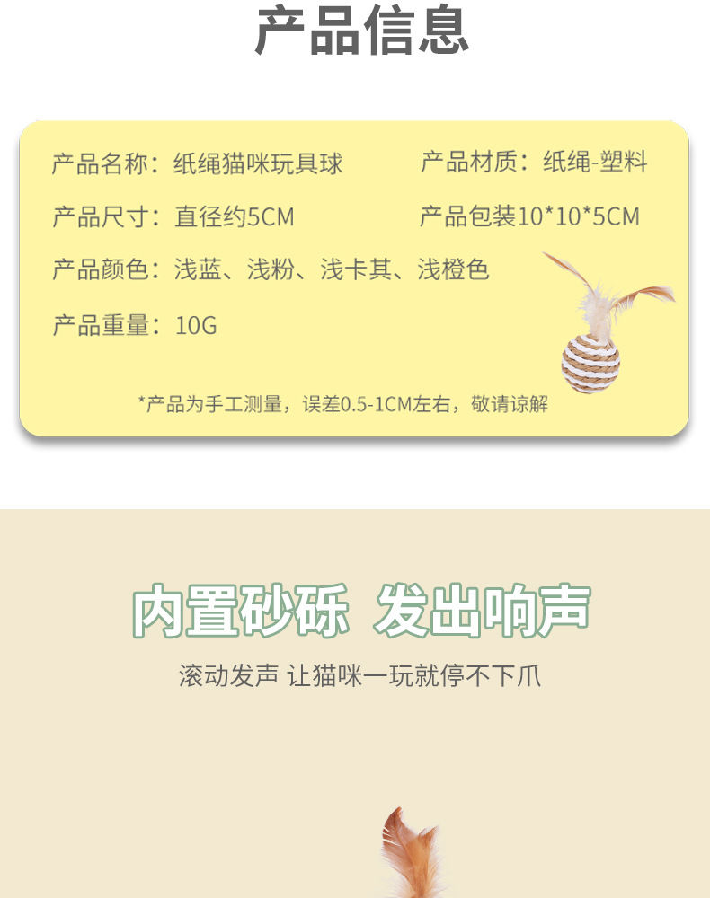 애완 동물 용품 아마존 폭발 깃털 종이 로프 공 고양이 장난감 하이 인터랙티브 고양이 장난감에서 멀티 컬러를 선택할 수 있습니다스토어 가기