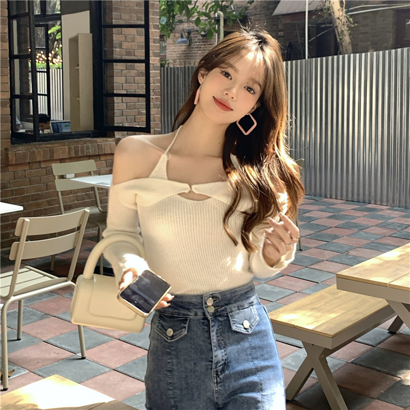 싱글은 지옥 노래 Zhiya 같은 섹시한 스웨터 여성용 투피스 슬링 스파이스 걸 탑 니트 셔츠 여름용스토어 가기