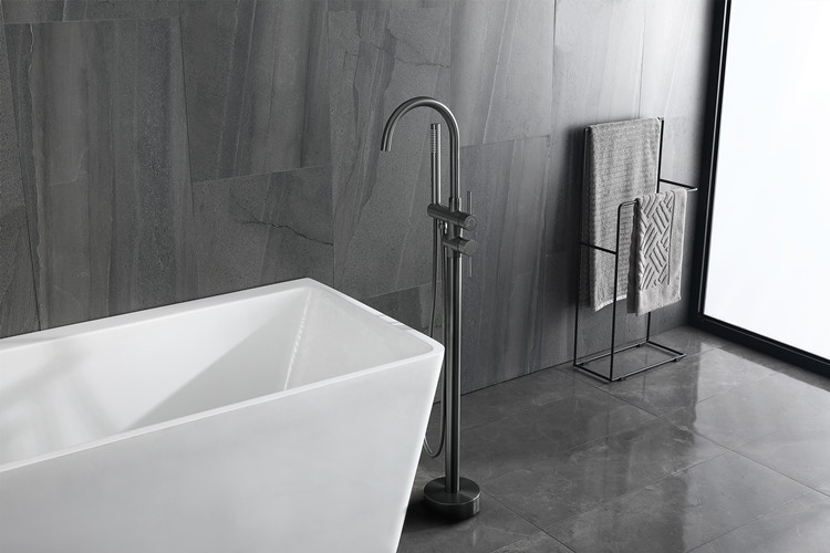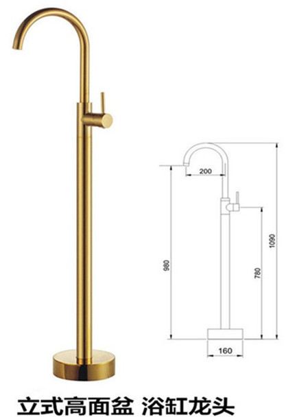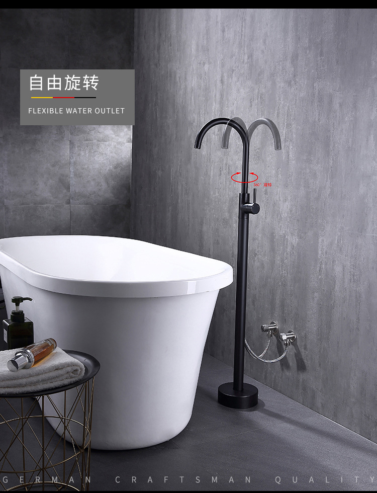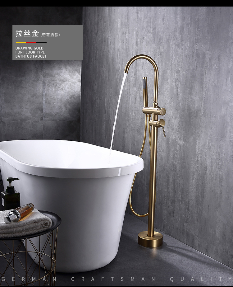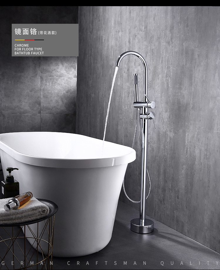 수직 욕조 수도꼭지 바닥 수도꼭지 회전 실린더 사이드 세면기 샤워 헤드 냉수 및 온수 독립 극 클래식스토어 가기