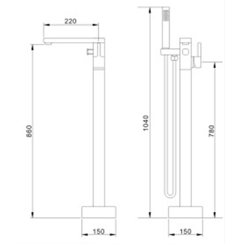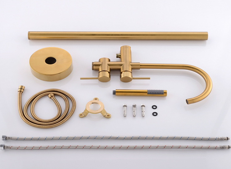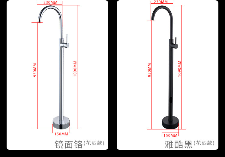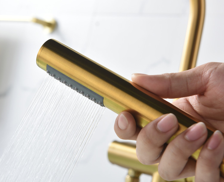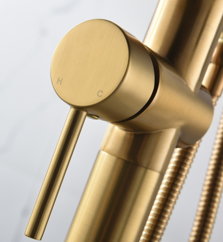 수직 욕조 수도꼭지 바닥 수도꼭지 회전 실린더 사이드 세면기 샤워 헤드 냉수 및 온수 독립 극 클래식