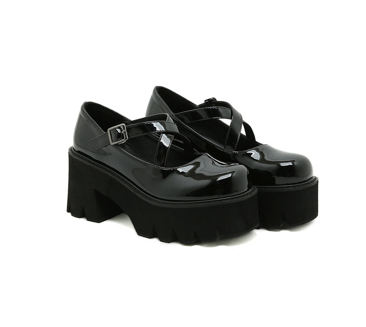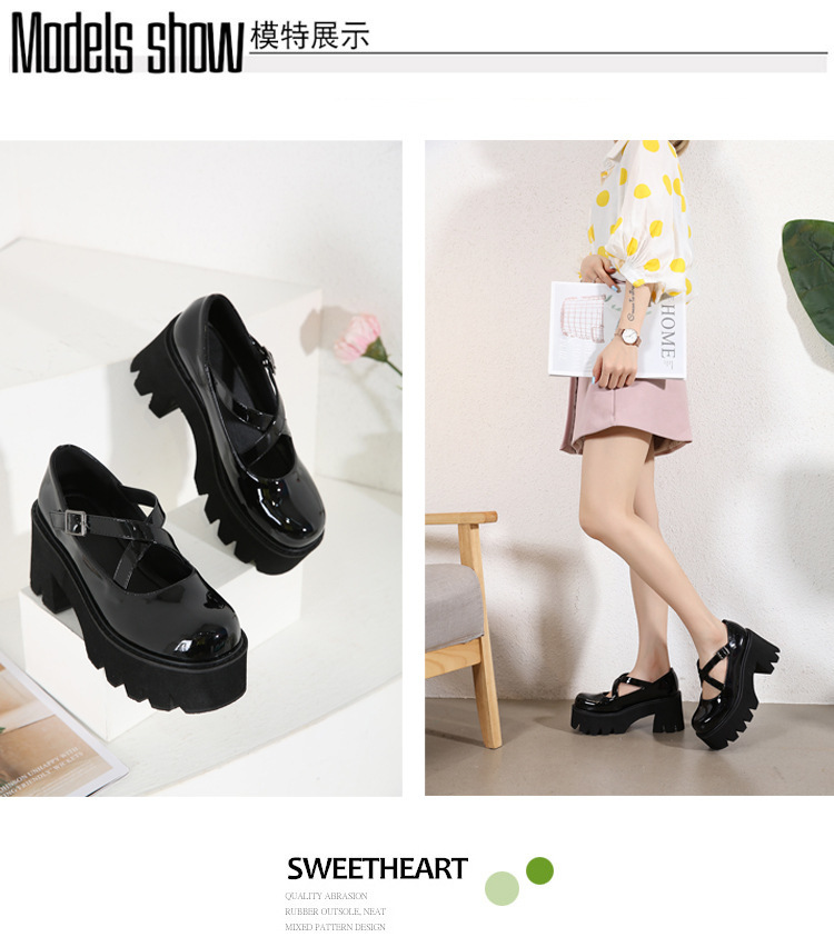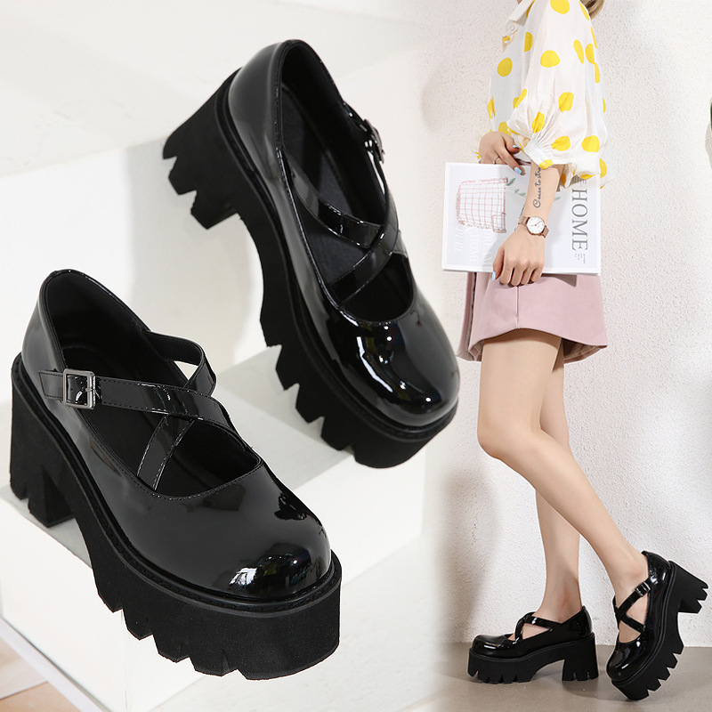 작은 가죽 신발 여성용 영국 스타일 2021 New Spring 에나멜 가죽 Mary Jane 여성 신발 플랫폼 단독 신발 35-42