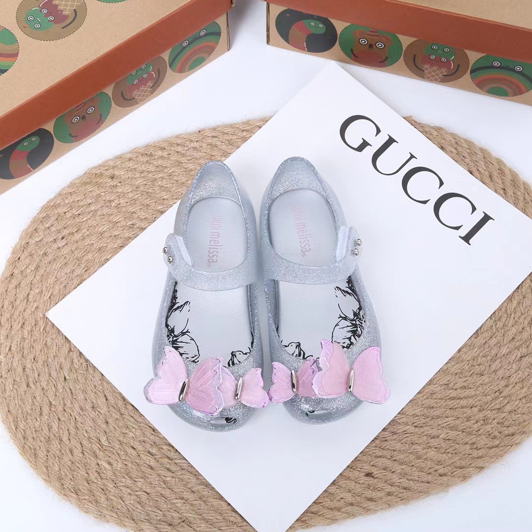멜리사 어린이 신발 멜리사 소녀 젤리 신발 공주 신발 아기 입체 나비 벨크로 물고기 입 어린이