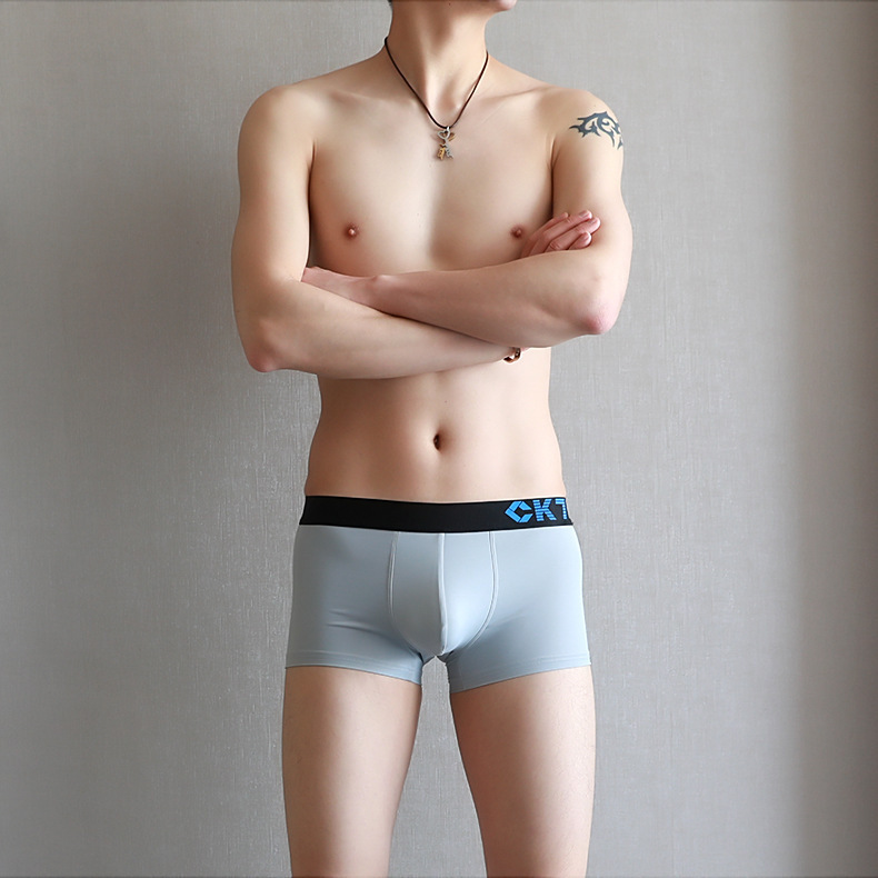 아이스 실크 남성 속옷 얇은 유행 남성 단색 심플 패션 복서 바지 스트레치 미드 웨이스트 짧은 바지