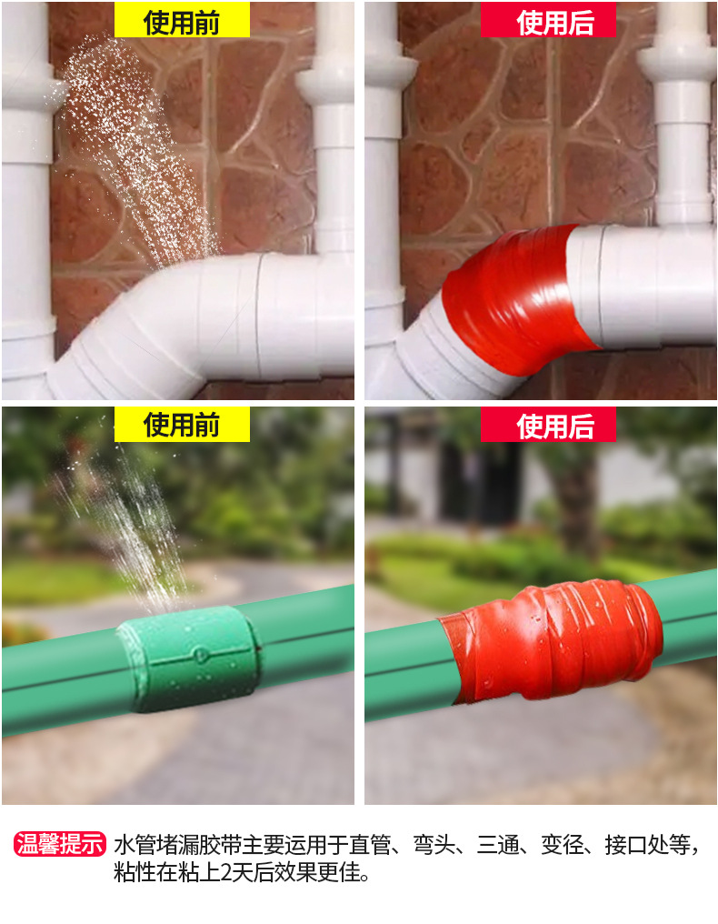 수도관 누출 수리 유물 고압 비정수 수리 누출 방지 테이프 누출 방지 자체 접착 테이프 PVC 실리콘 물 방출 패치