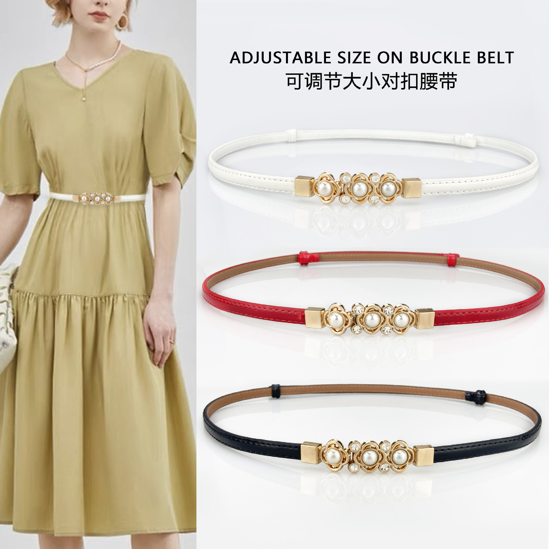 고급 감각 버클 진주 벨트 다이아몬드 허리 씰 여성용 장식 벨트 조정 가능한 크기 얇은 벨트 여성용 여성용 벨트