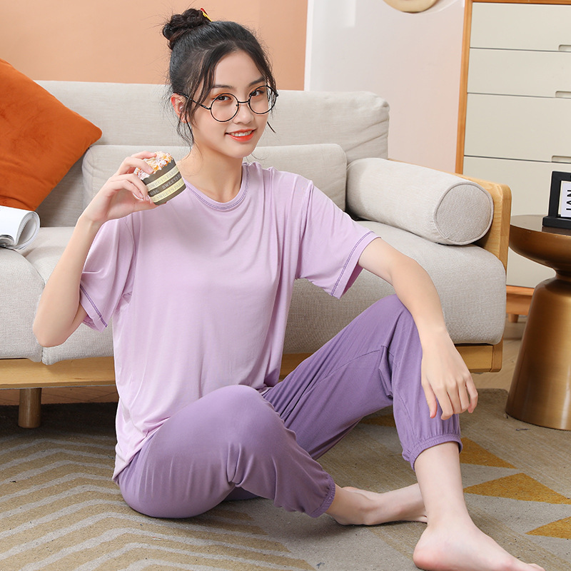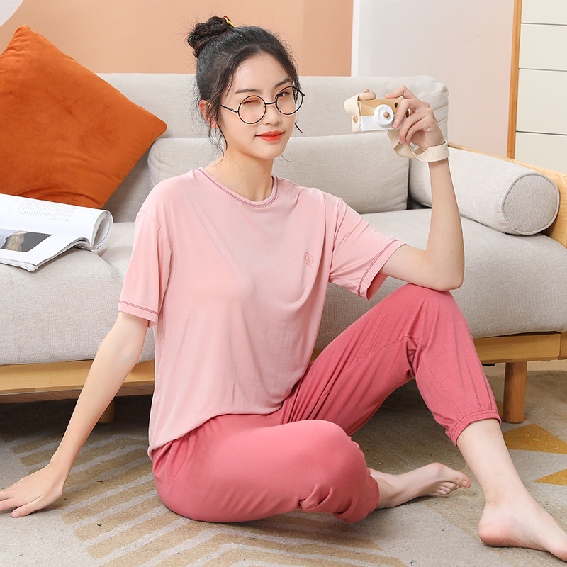 도매 여름 어린이 가정복 세트 중형 및 대형 어린이 반팔 바지 투피스 세트 단색 밤 형광 재고스토어 가기