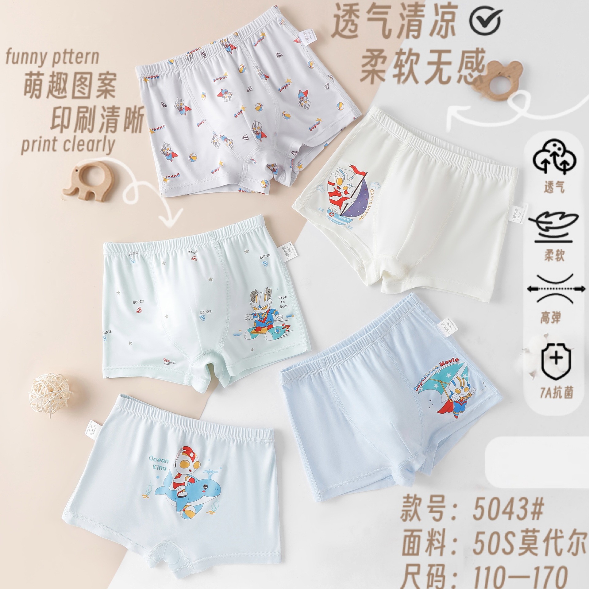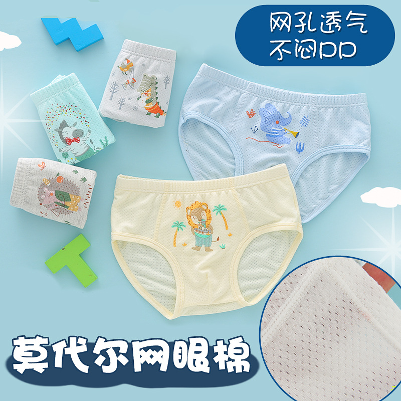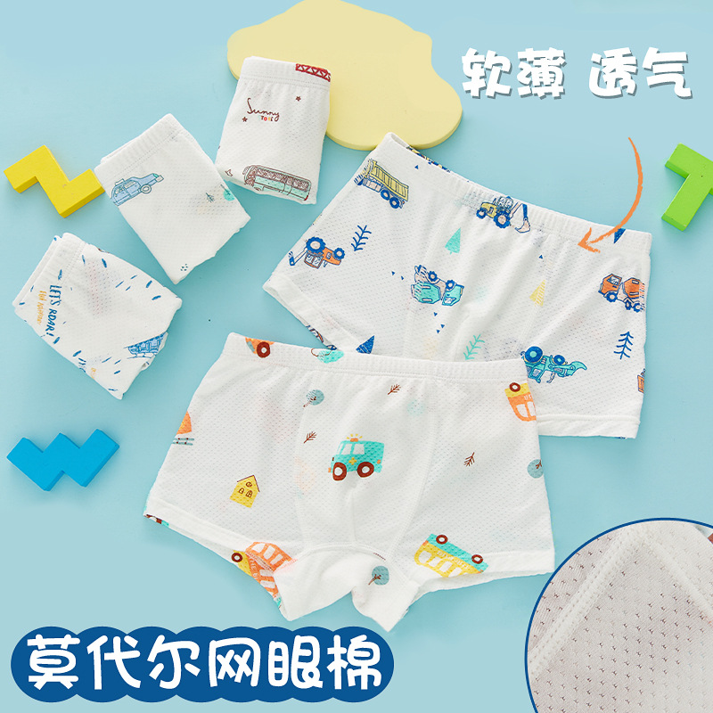 남아 여름 얇은 속옷 어린이 복서 소년과 아기의 여성 삼각형 4 각 반바지 모달 통기성 메쉬 바지