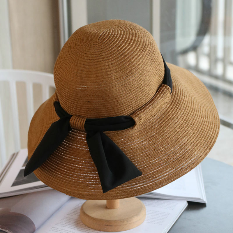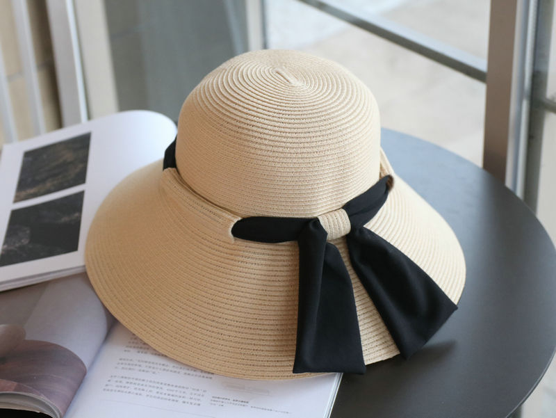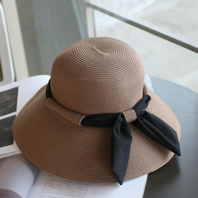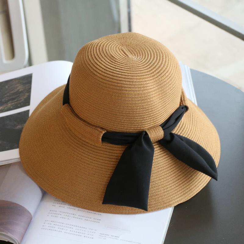 일본 카운터 밀짚 짠 큰 챙 분지 모자 밀짚 모자 여성용 접이식 리본 활 자외선 차단제 어부 모자 차양 모자스토어 가기