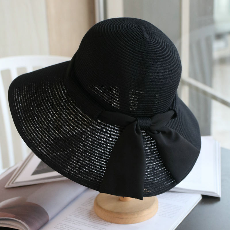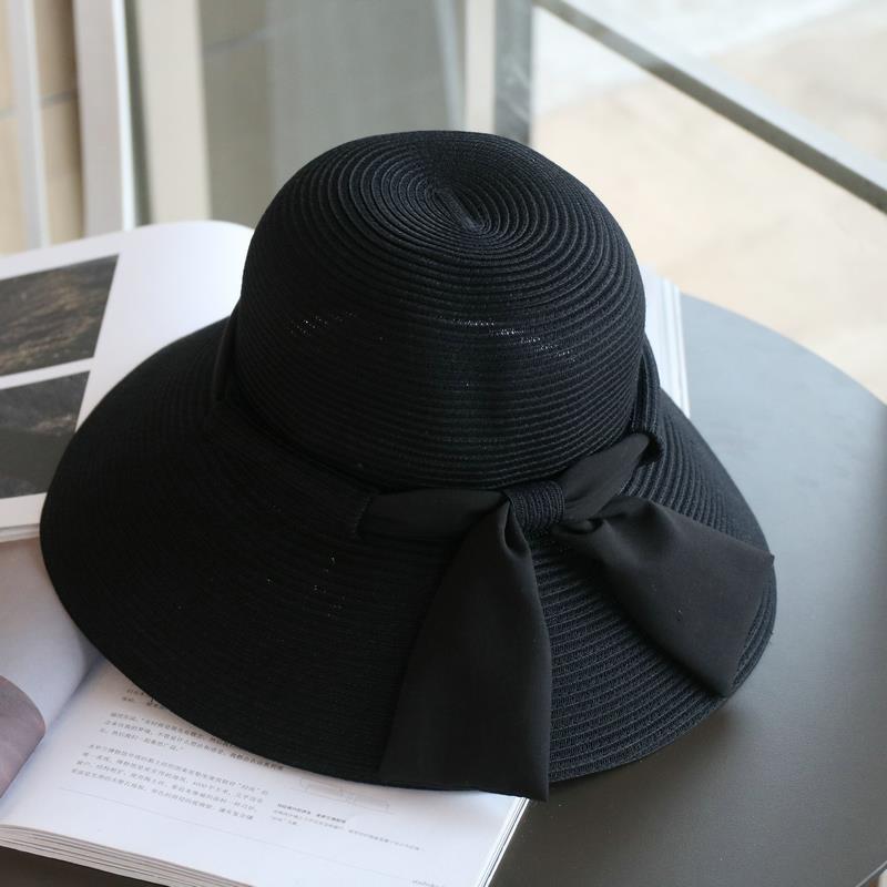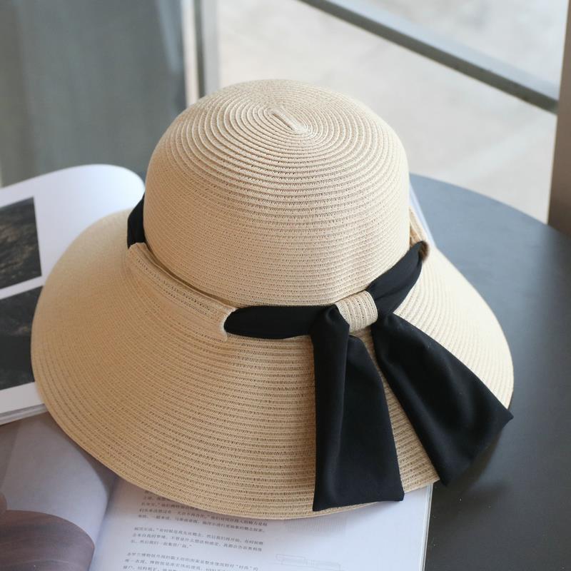 일본 카운터 밀짚 짠 큰 챙 분지 모자 밀짚 모자 여성용 접이식 리본 활 자외선 차단제 어부 모자 차양 모자