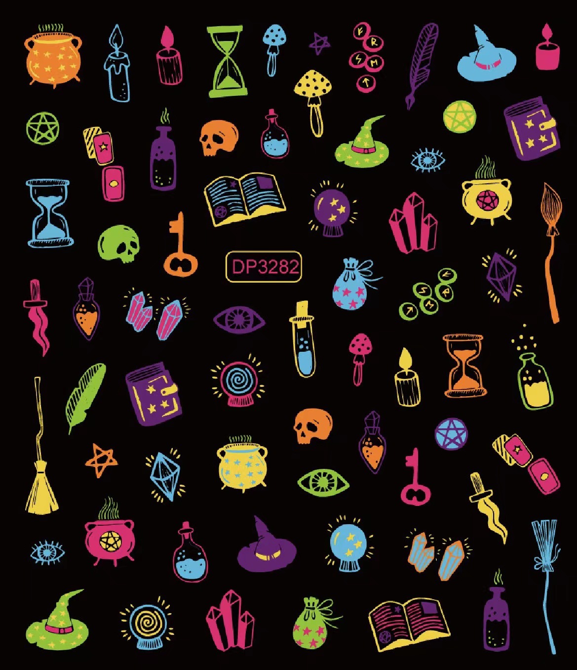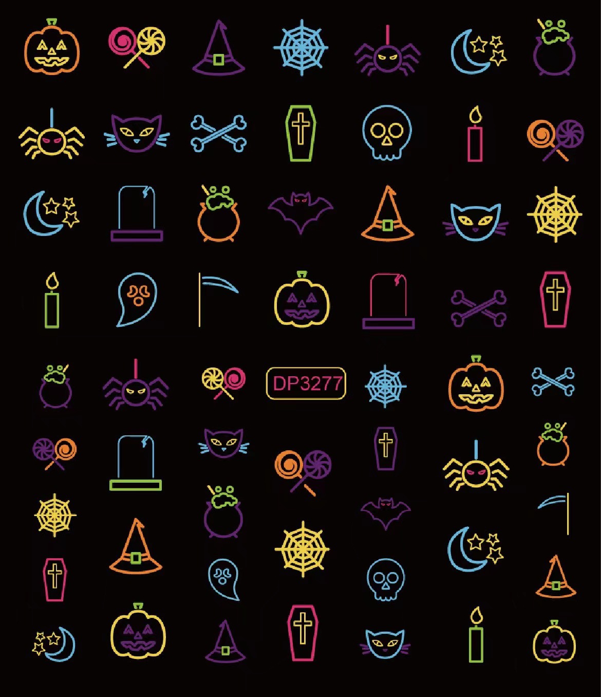 네일 아트 새로운 형광색 할로윈 시리즈 접착 네일 데칼 번호 DP 호박 거미 종이 카드 포장스토어 가기