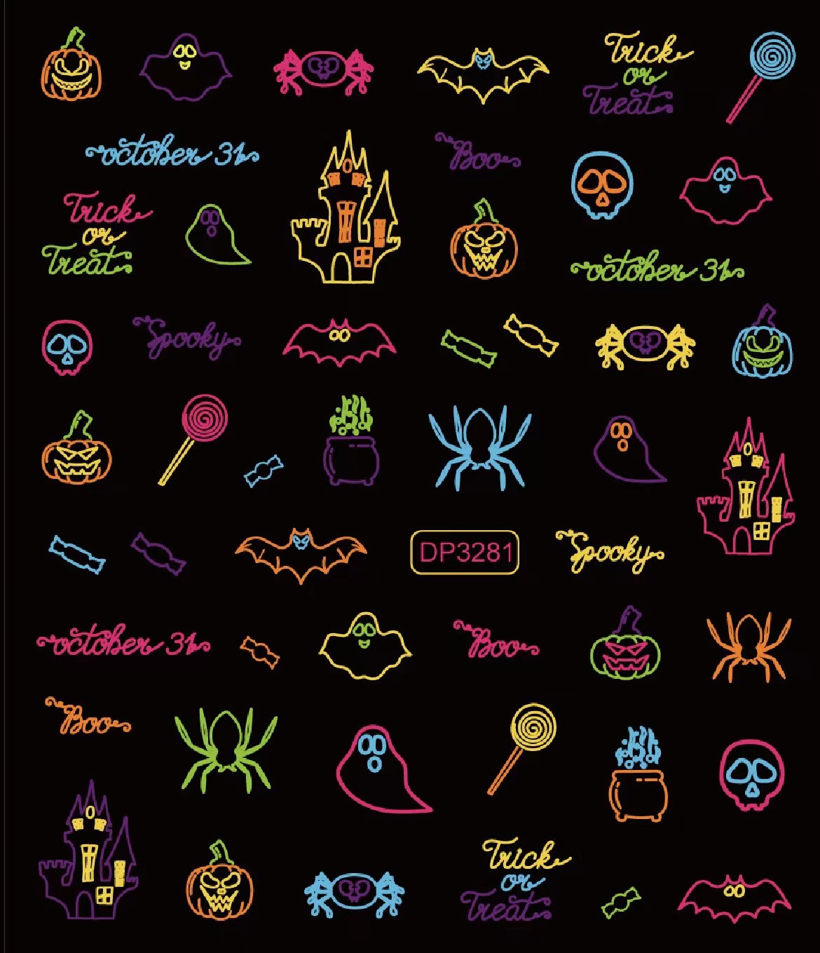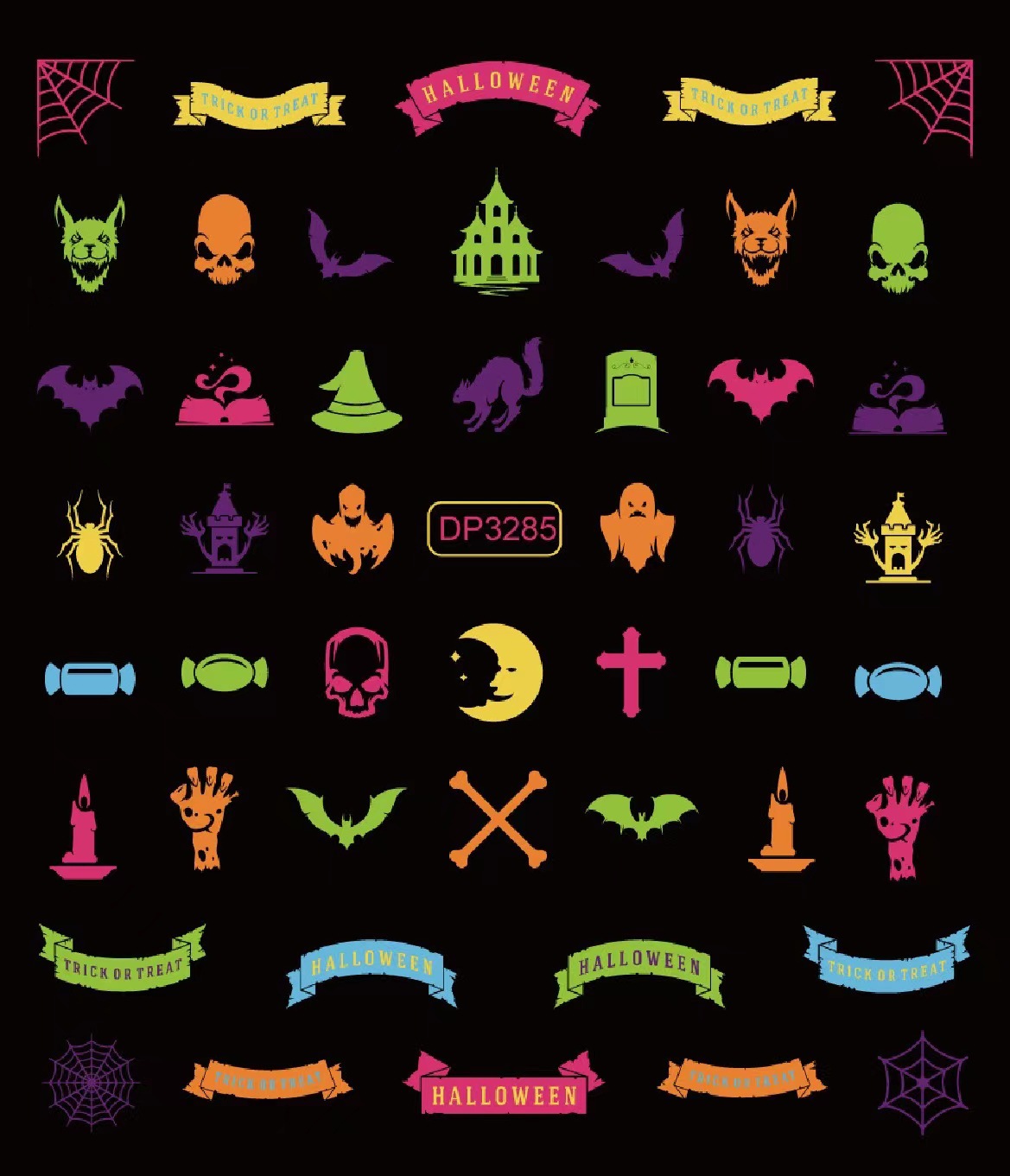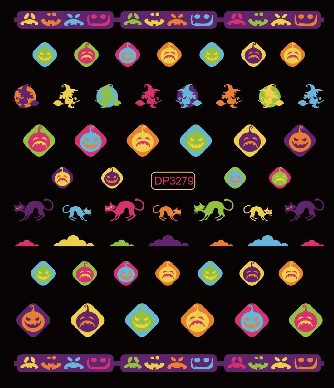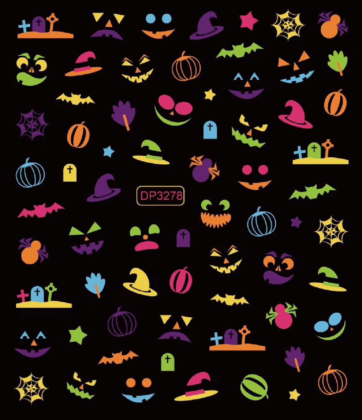 네일 아트 새로운 형광색 할로윈 시리즈 접착 네일 데칼 번호 DP 호박 거미 종이 카드 포장