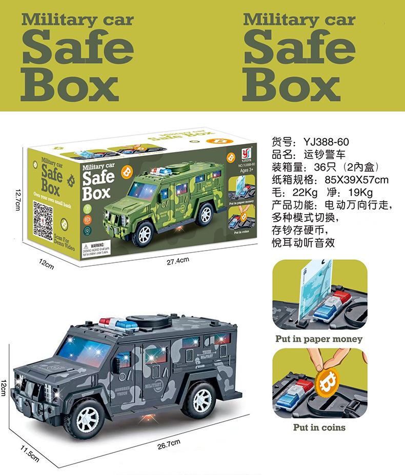 위장 조명 돈 수송 경찰차 보편적 인 걷는 자동 롤 돈 돼지 저금통 창조적 인 전기 장난감 자동차스토어 가기