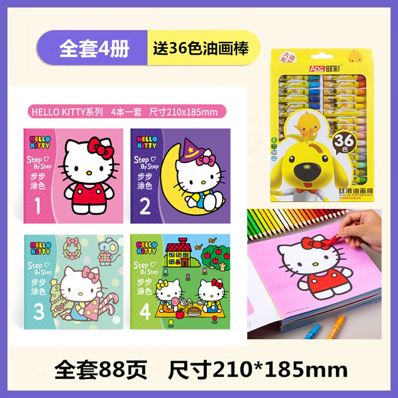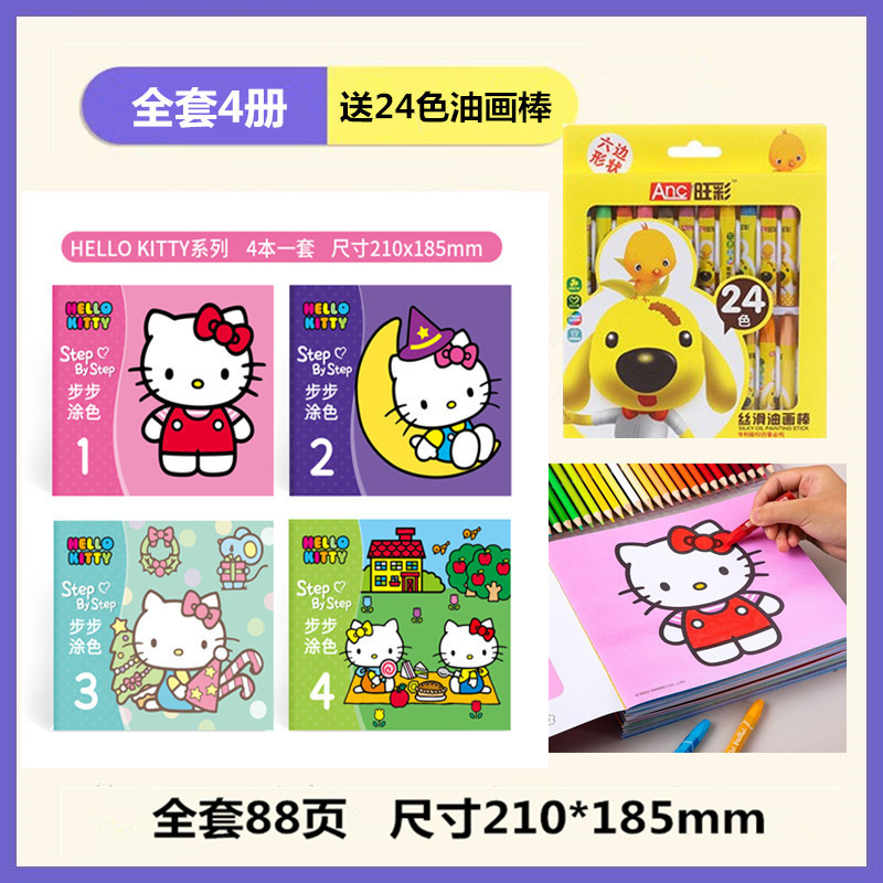 • 단계별 색칠 - KT 고양이 (4권) + 24색 오일파스텔