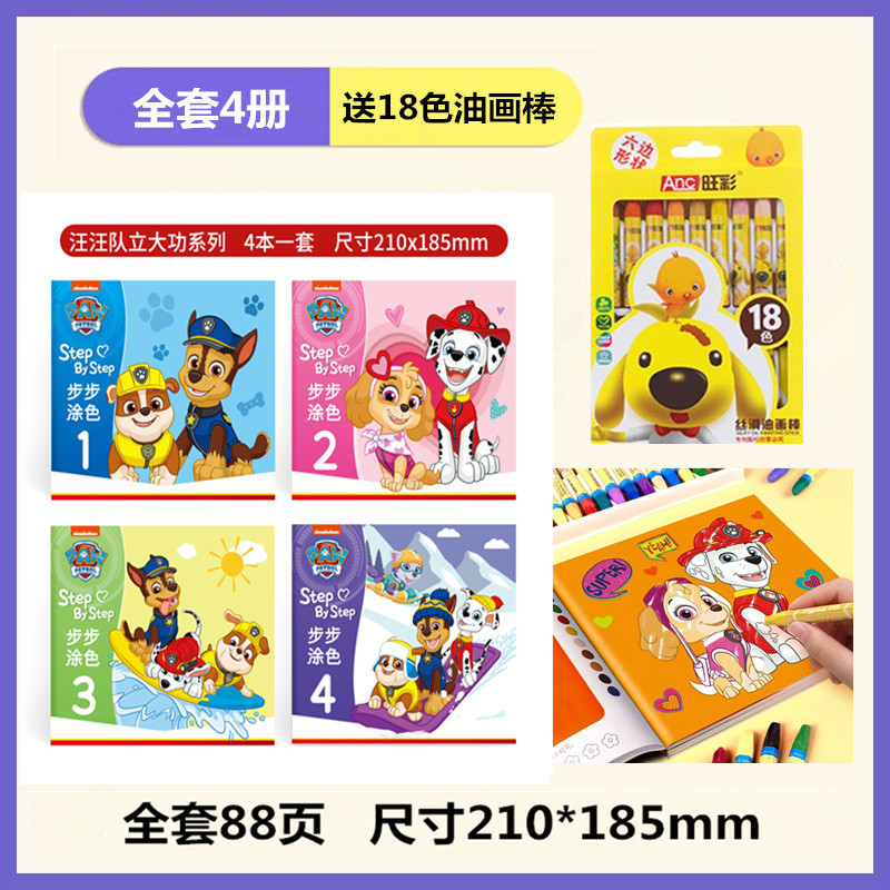 • 단계별 색칠 - Paw Patrol (4권) + 18색 오일파스텔