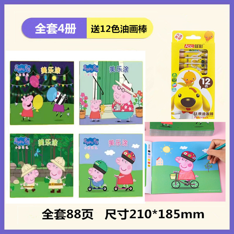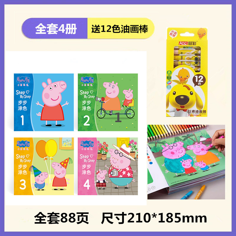 • 단계별 색칠 - 페파피그(4권) + 12색 오일파스텔