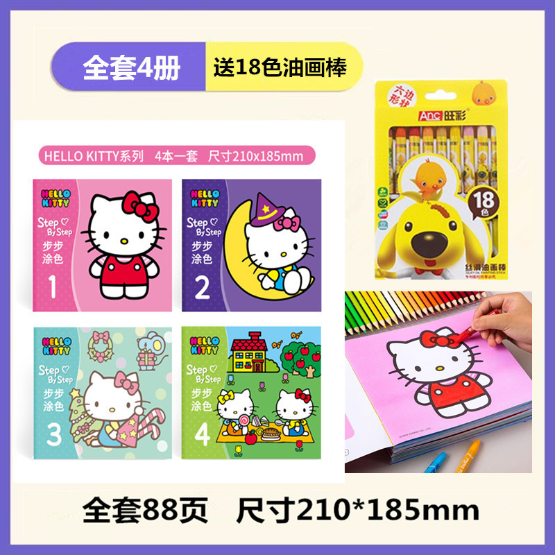 • 단계별 색칠 - KT 고양이 (4권) + 18색 오일파스텔