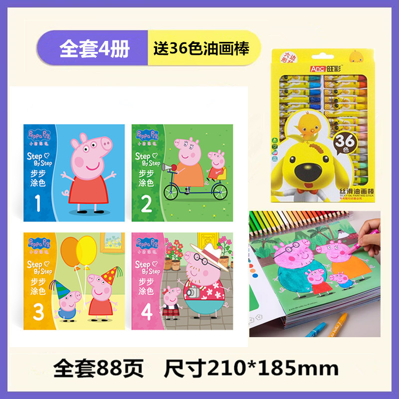 • 단계별 색칠 - 페파피그(4권) + 36색 오일파스텔