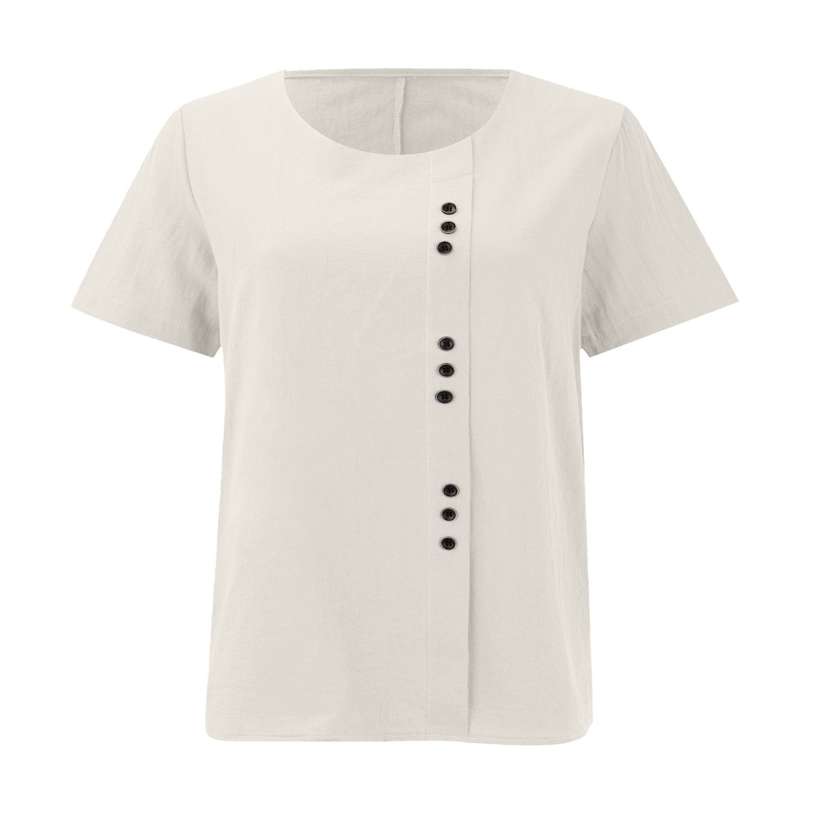 크로스 보더 여성의 면과 린넨 탑 플러스 사이즈 캐주얼 느슨한 면과 린넨 티셔츠 면과 린넨 여성 플러스 사이즈 여성의 AMZ 폭발스토어 가기