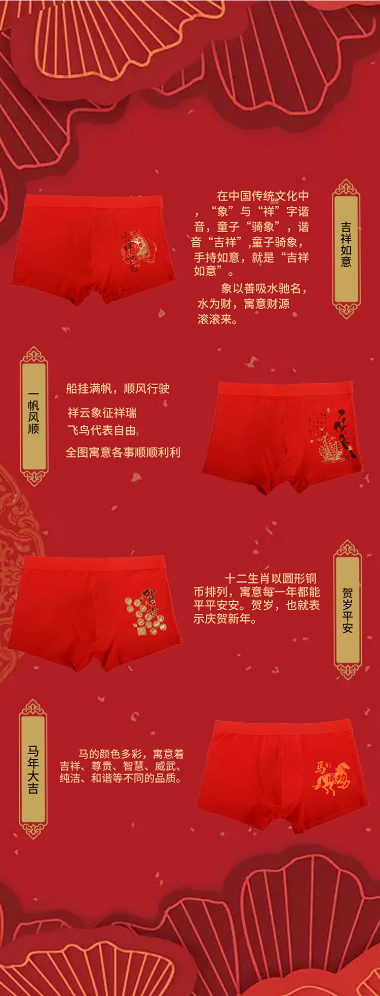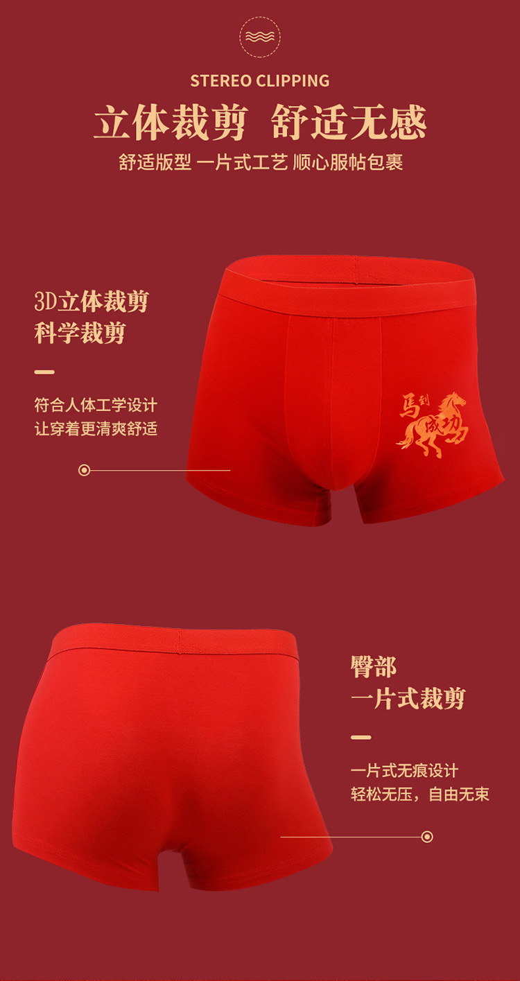 남성용 순면 빨간색 속옷, 생년월일에 맞는 남자 사각팬티, 결혼 축하 행운 팬티, 선물 상자 포장스토어 가기