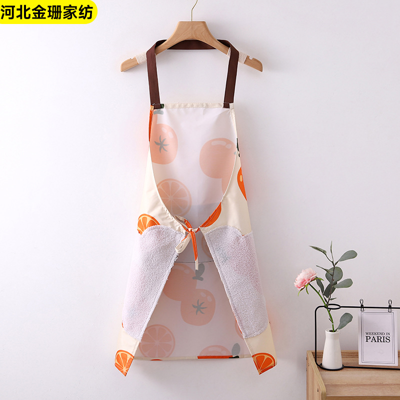 柿柿如意 앞치마 손 닦기 가능 방오 앞치마 목걸이형 주방 카페 밀크티 가게 가정용 여성용