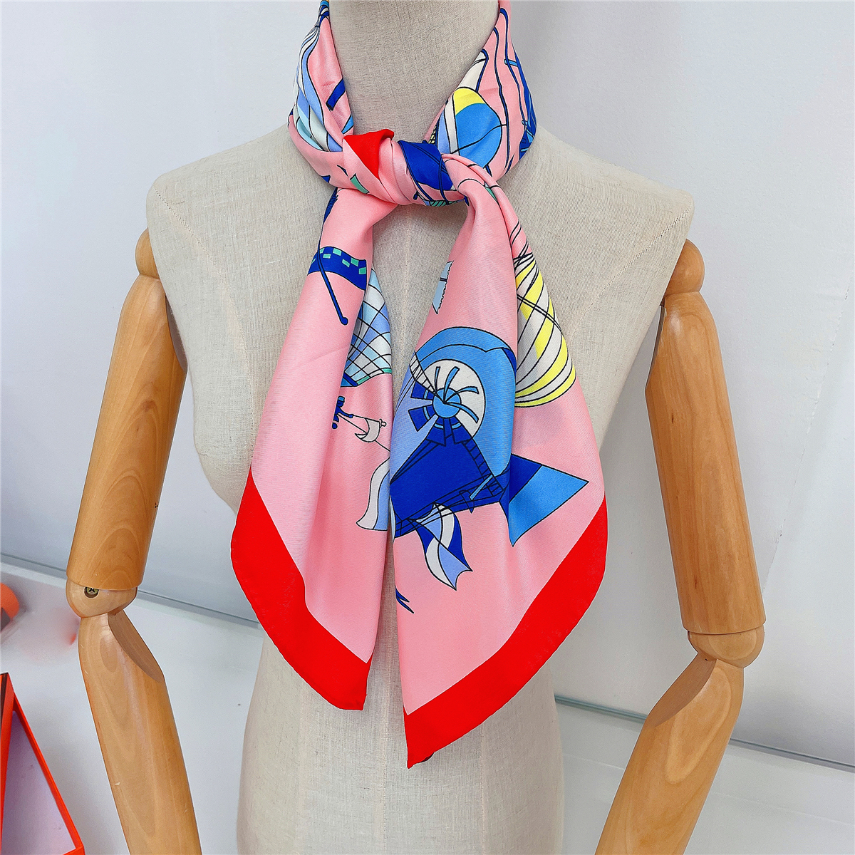 일본 여름 얇은 하이 엔드 다목적 핑크 실크 스카프 스퀘어 스카프 튜브 탑 장식 스카프 새로운 2024 핫 스타일