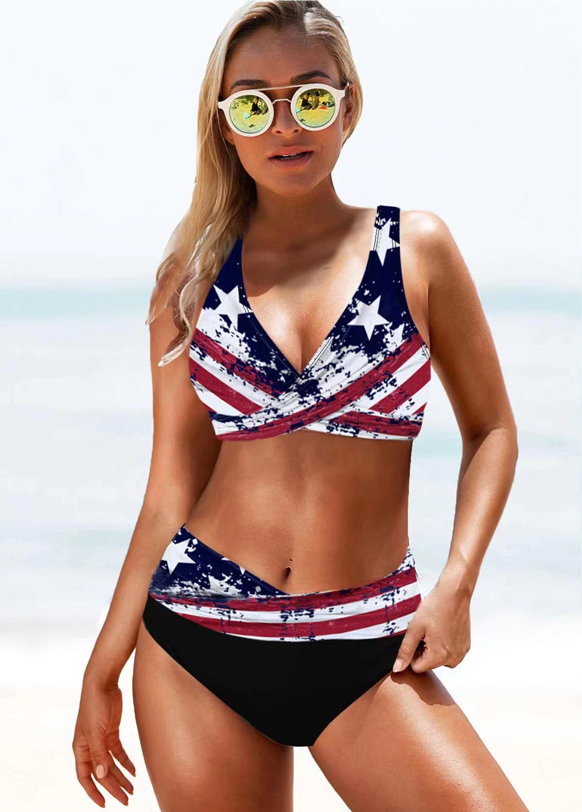 2020 새로운 분할 플러스 사이즈 하이 웨이스트 레인보우 스트라이프 여러 가지 빛깔의 비키니 유럽과 미국 대외 무역 아마존 수영복스토어 가기