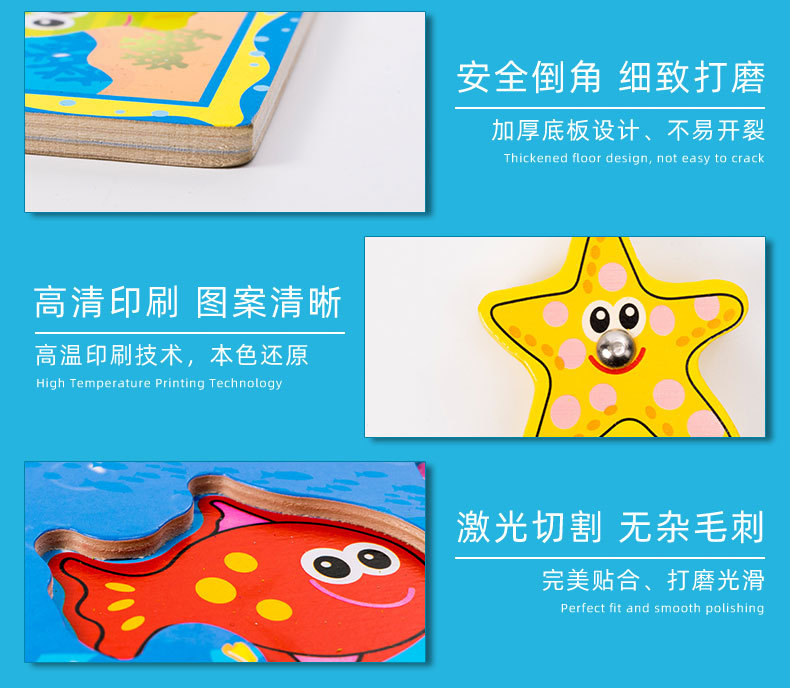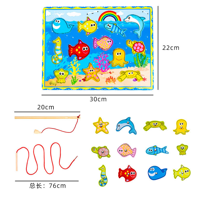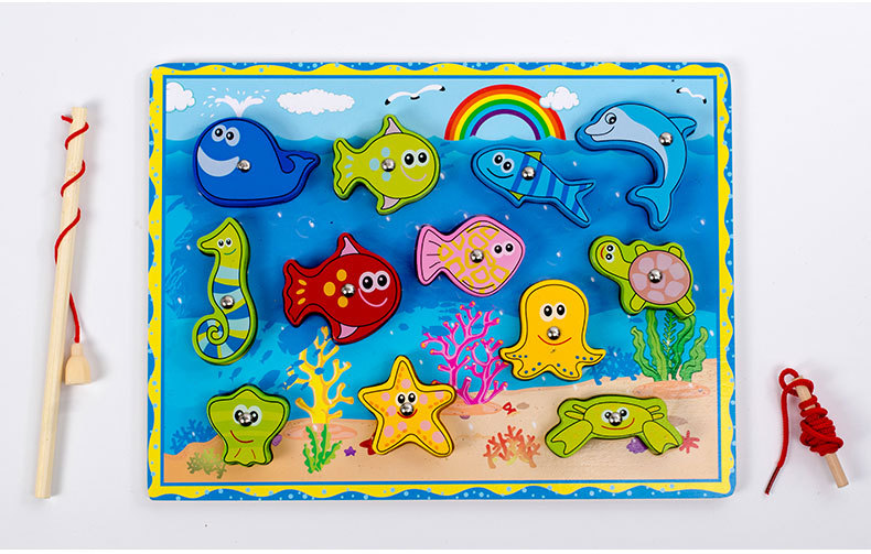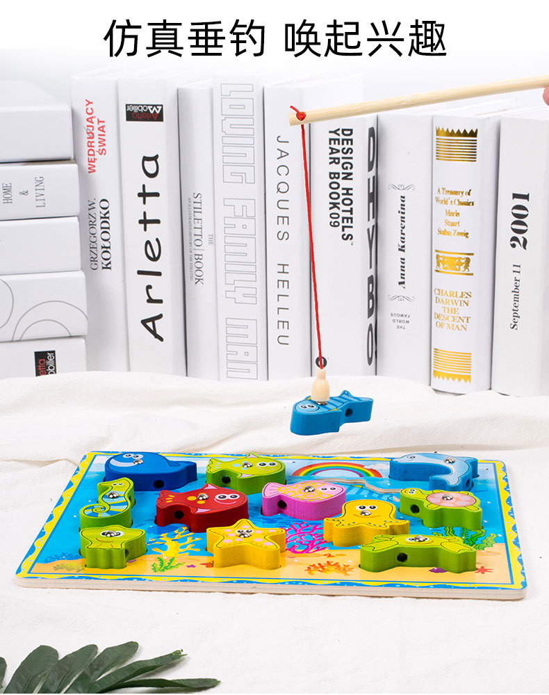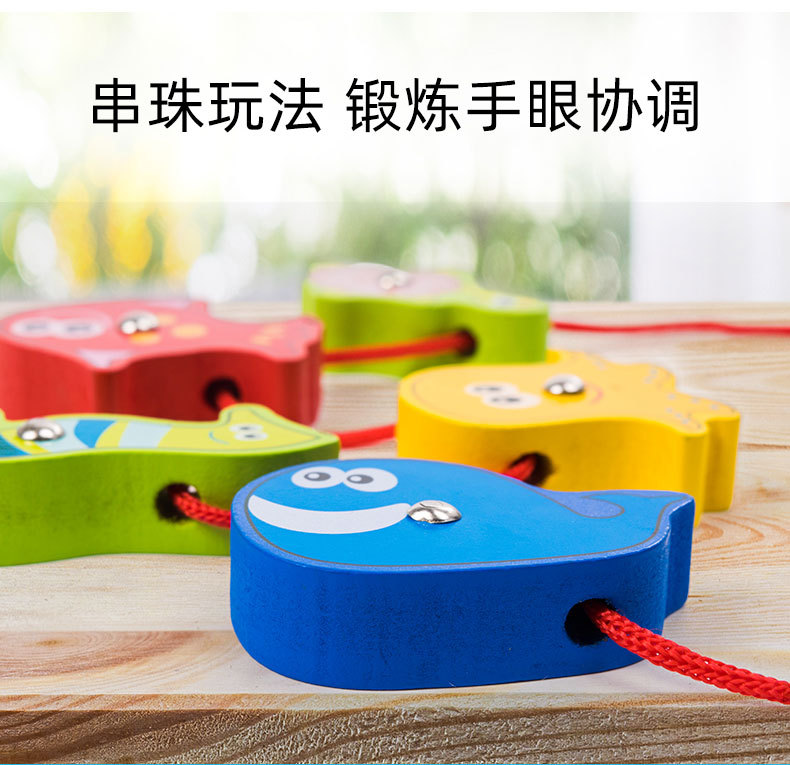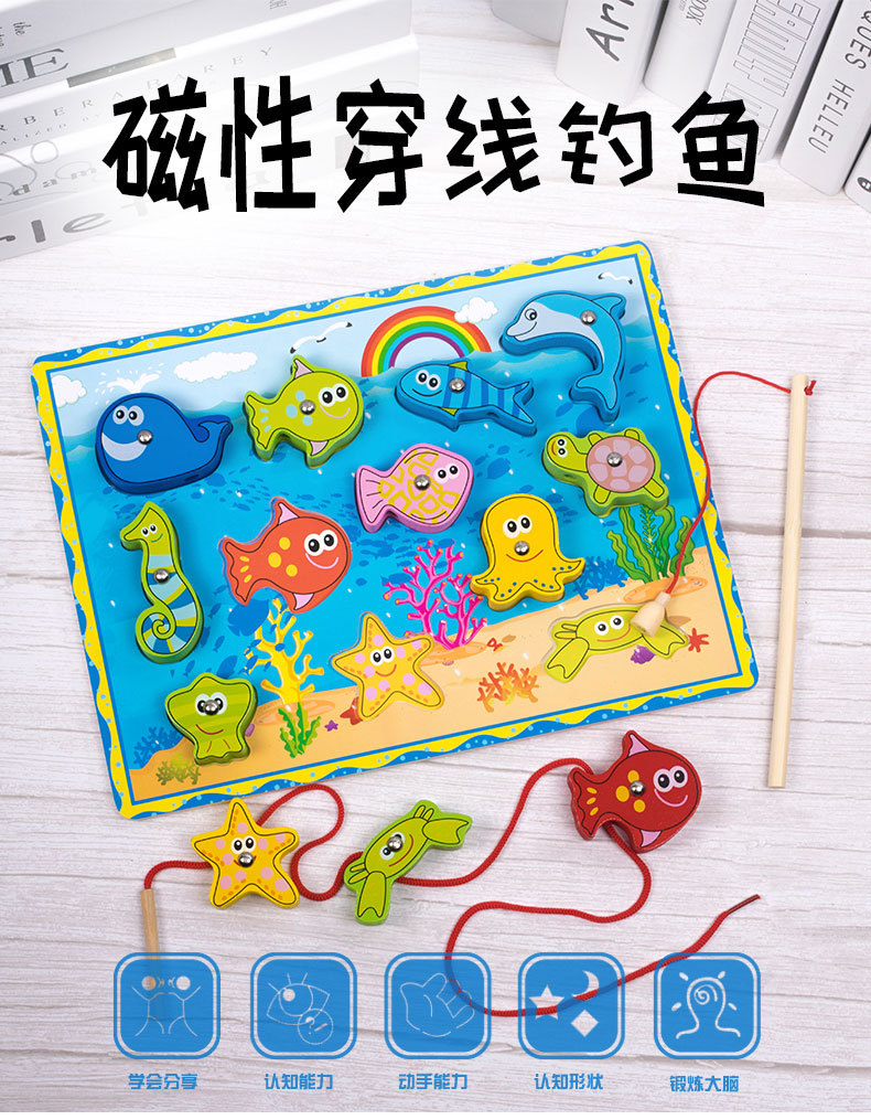 나무 자기 스레딩 낚시 동물 입체 낚시 매칭 보드 구슬 빌딩 블록 아기 교육 조기 교육 장난감스토어 가기