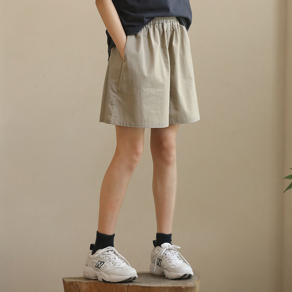 홍콩 스타일의 탄성 허리 캐주얼 바지 얇은 단색 스포츠 반바지 소녀 2024 새로운 빈티지 하이 허리 슬리밍 퀼로트스토어 가기