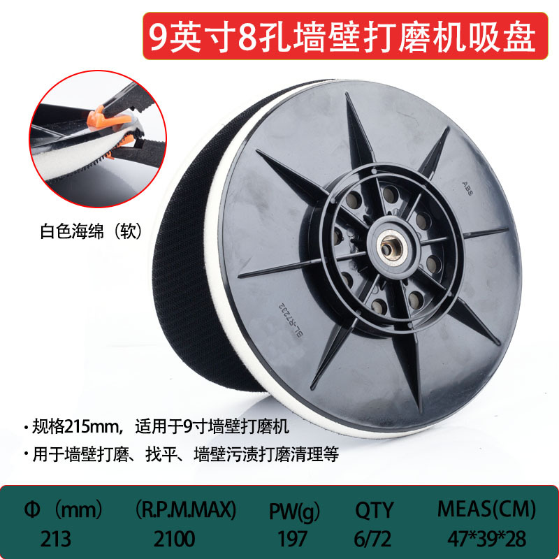 9inch 벽 연마기 섀시 모델 230 샌딩 페이퍼 기계 매칭 연마 디스크 버클 트레이 자체 접착 연삭 흡입 컵