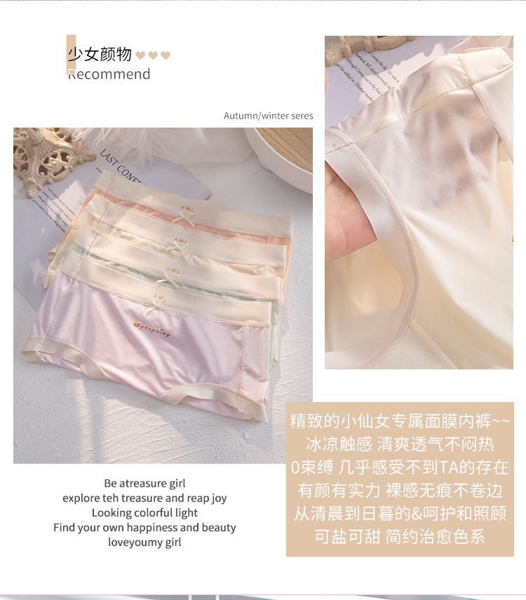여름 숙녀 아이스 실크 속옷 얇은 허리 뽕나무 실크 가랑이 소녀 순수한 원하는 귀여운 반바지 헤드 제조 업체 도매스토어 가기