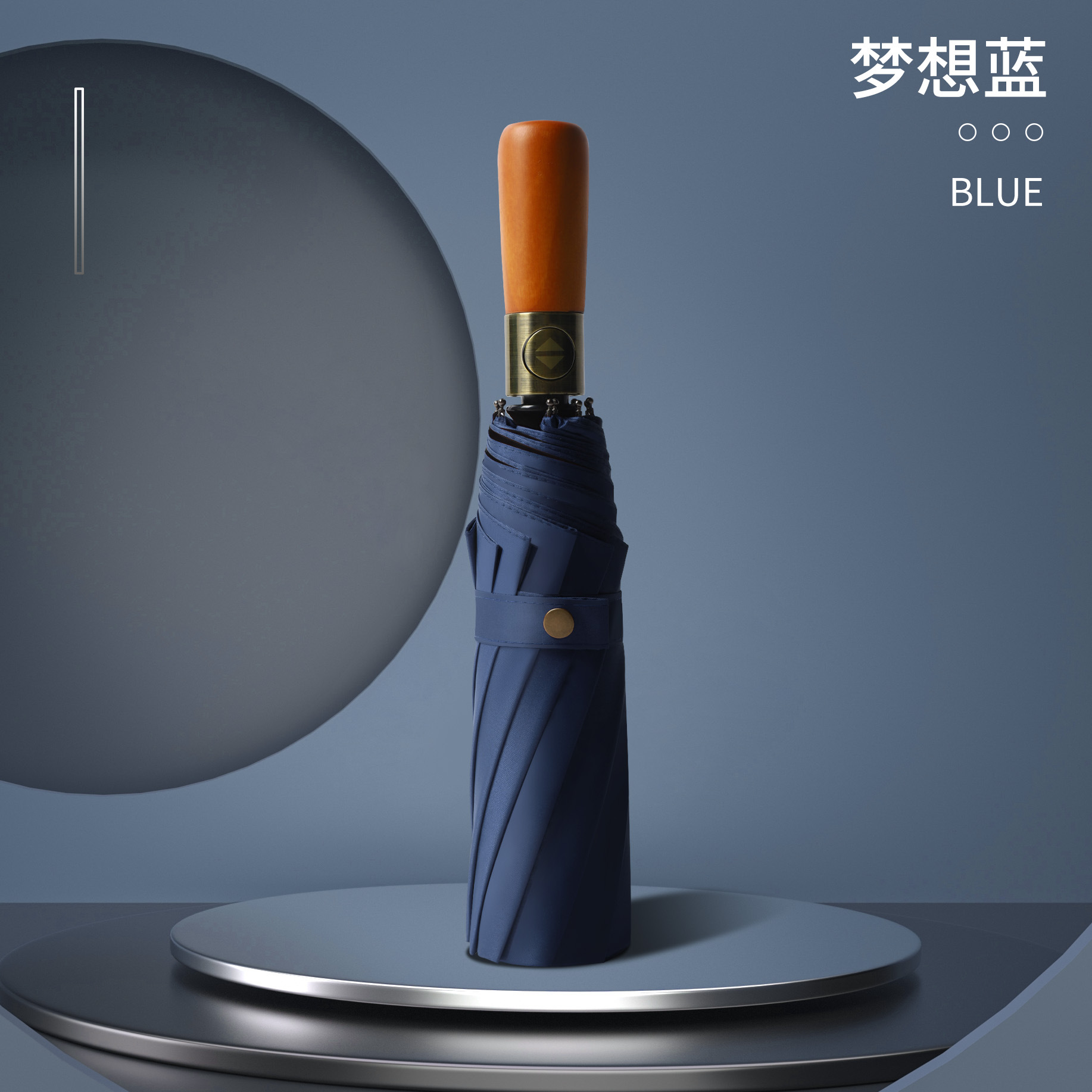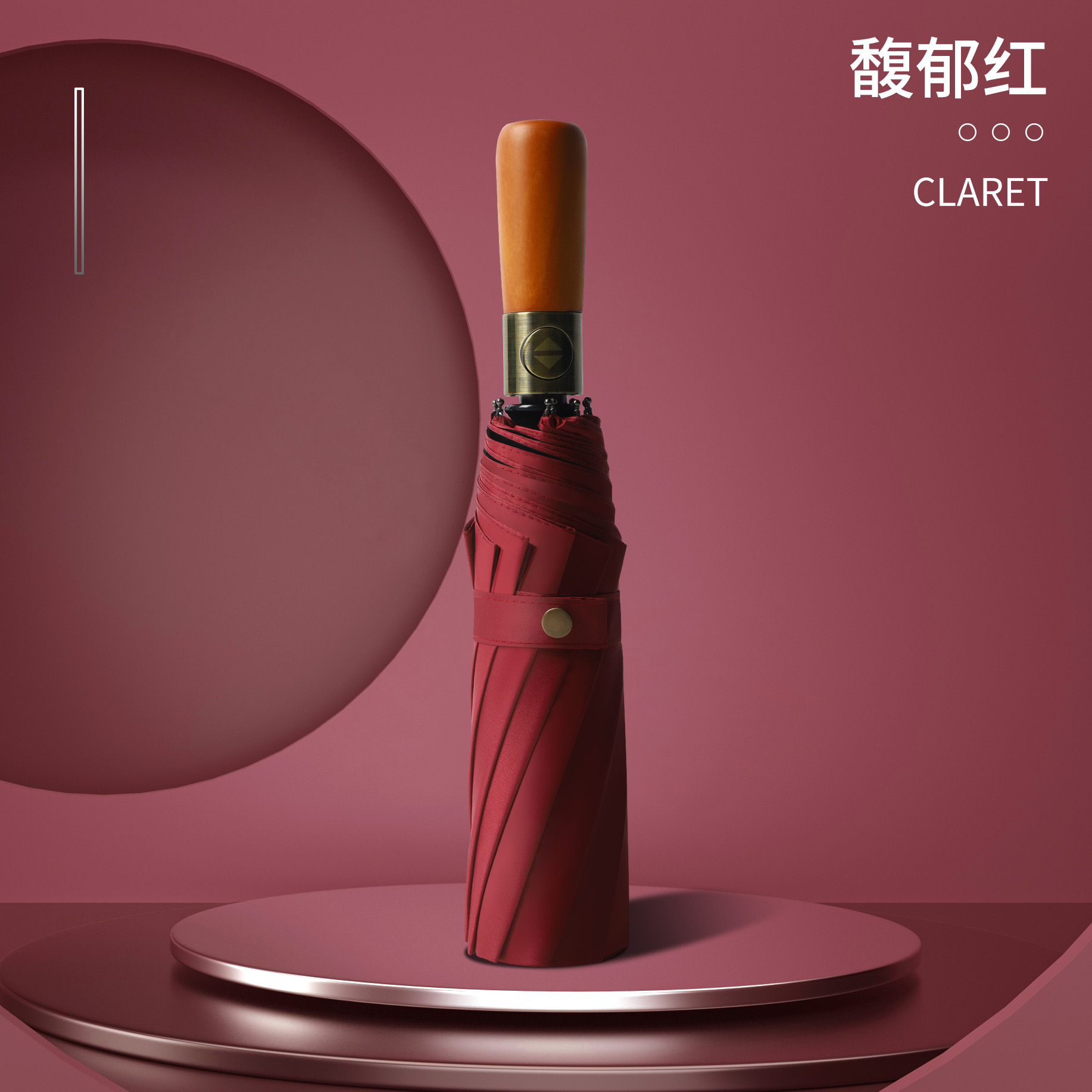 새로운 완전 자동 청동 나무 손잡이 접이식 양지 바른 비 오는 광고 우산 검정 고무 양산 비즈니스 우산 도매 인쇄 가능 로고