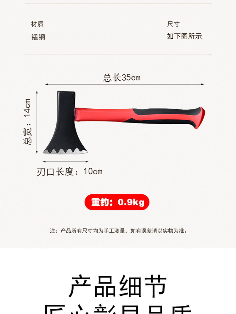 • 【 0.8kg 】나무 손잡이가 달린 강화 단조 도끼