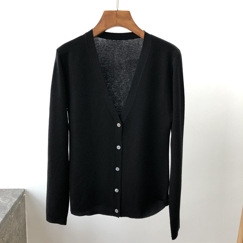 NL 새로운 실크 사이핑 니트 슬림핏 카디건 여성용 V-넥 긴 소매 모든 매치 재킷 재고 공장 직접 배치스토어 가기