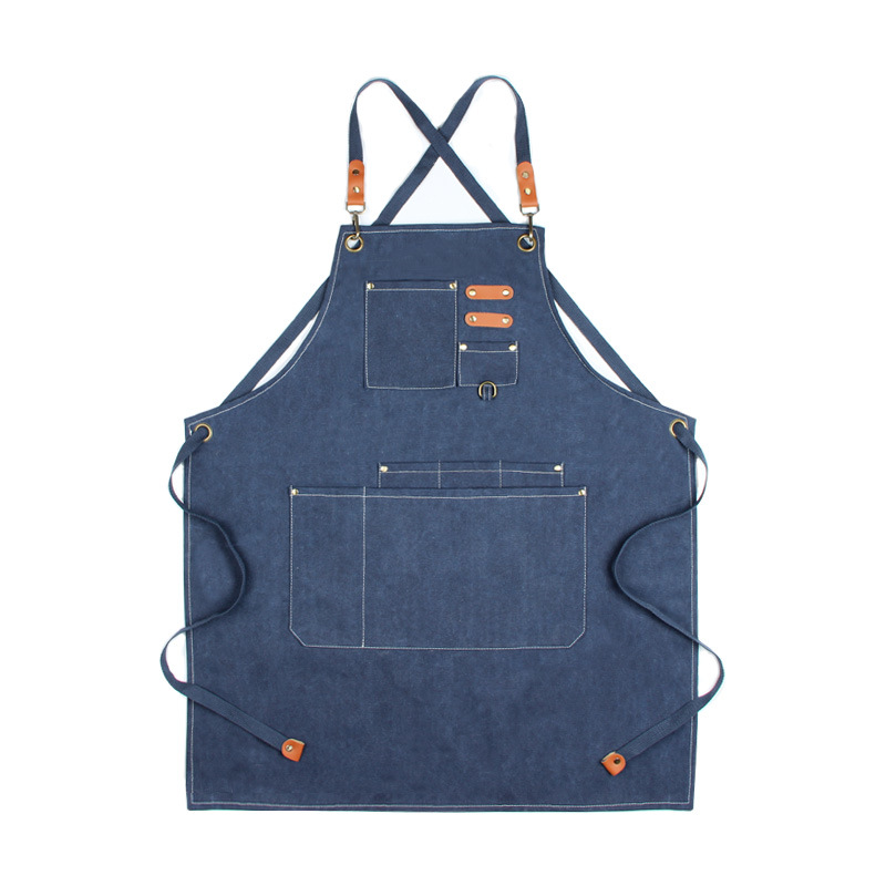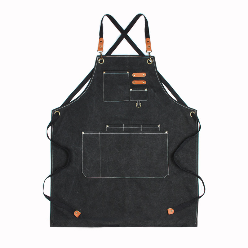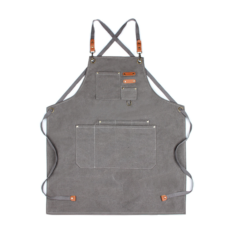국경 간 순면 두꺼운 캔버스 앞치마 인쇄 로고 미용사 플로리스트 레스토랑 바 카페 작업 앞치마