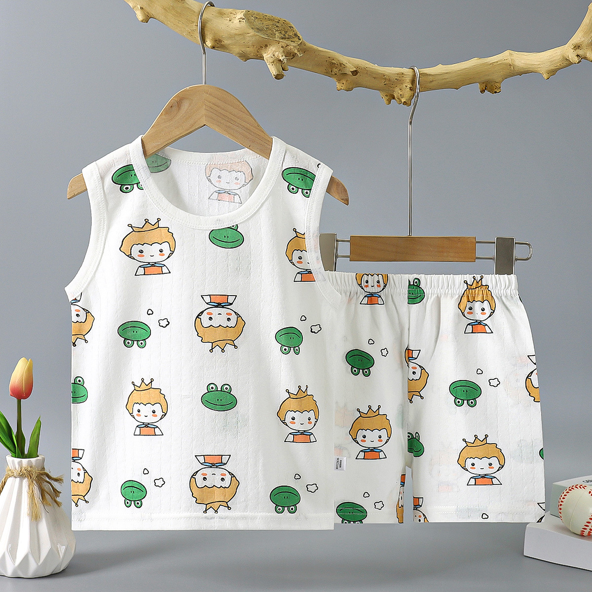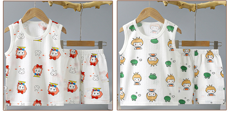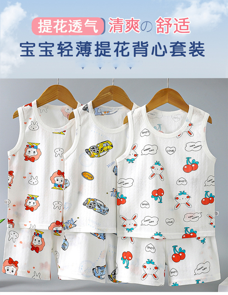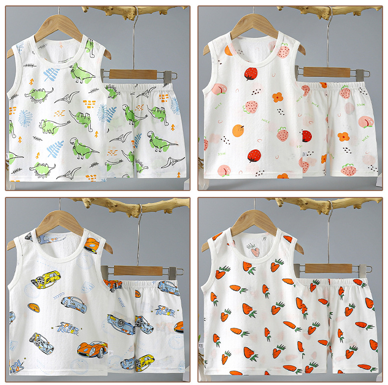 여름 얇은 어린이 면 조끼 세트 민소매 티셔츠 아기 소녀의 조끼 반바지 소년의 면 투피스 세트스토어 가기