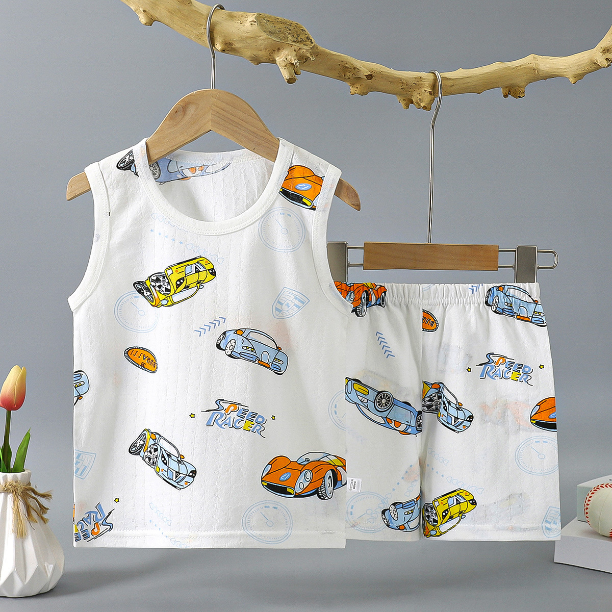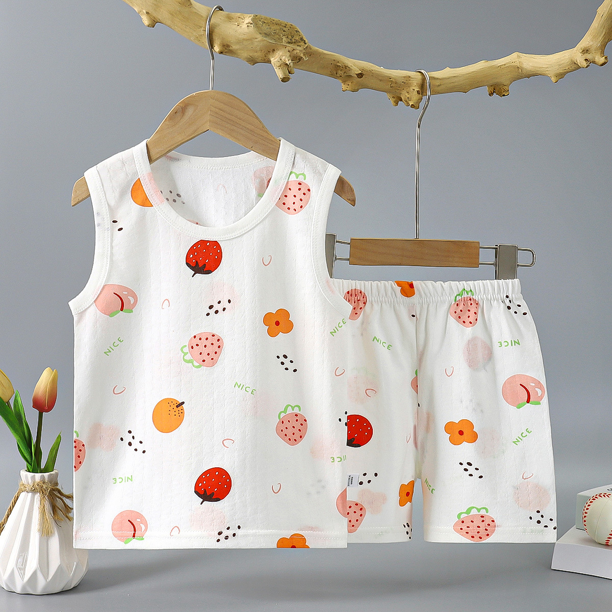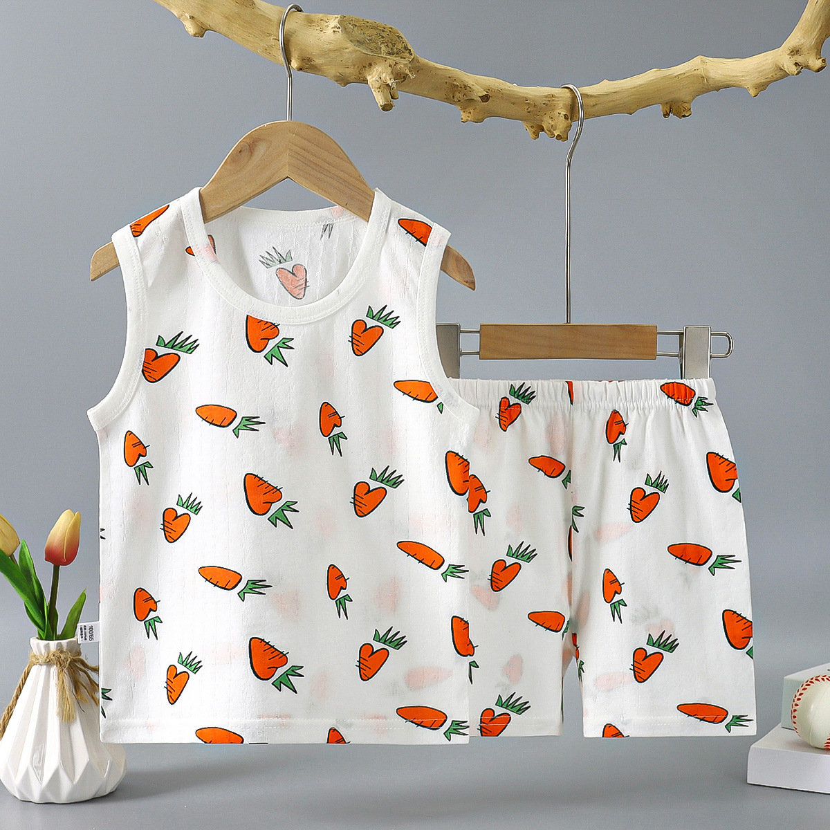 여름 얇은 어린이 면 조끼 세트 민소매 티셔츠 아기 소녀의 조끼 반바지 소년의 면 투피스 세트스토어 가기