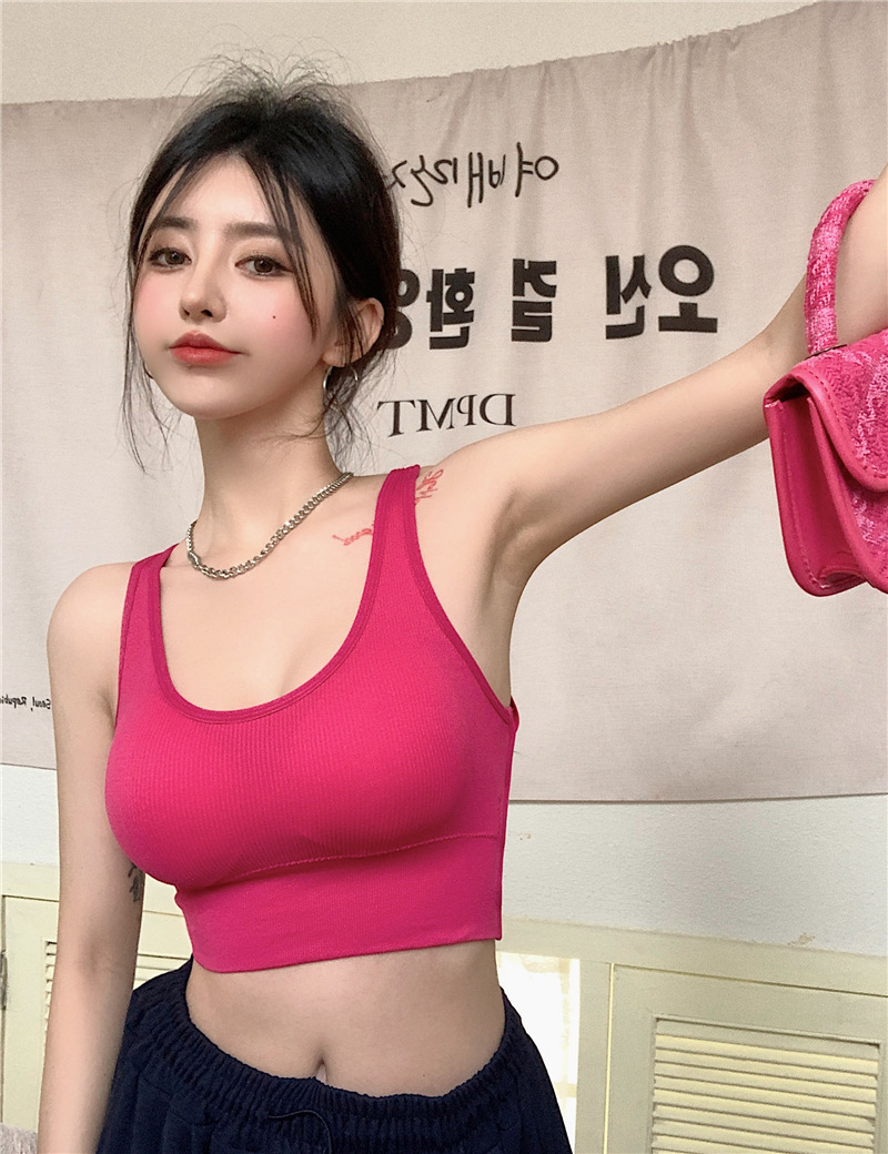 여름 짧은 뜨거운 소녀 에 섹시한 아름다운 뒤 니트 작은 캐미솔 조끼 가슴 패드를 감싸는 여자의 내부 포기 아름다운 뒤