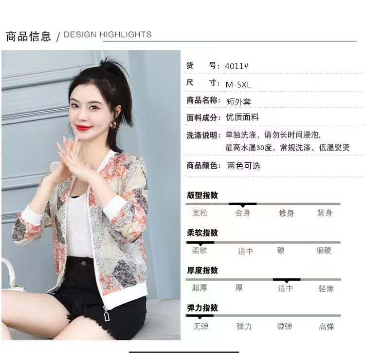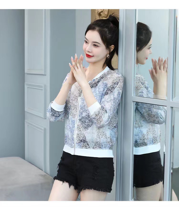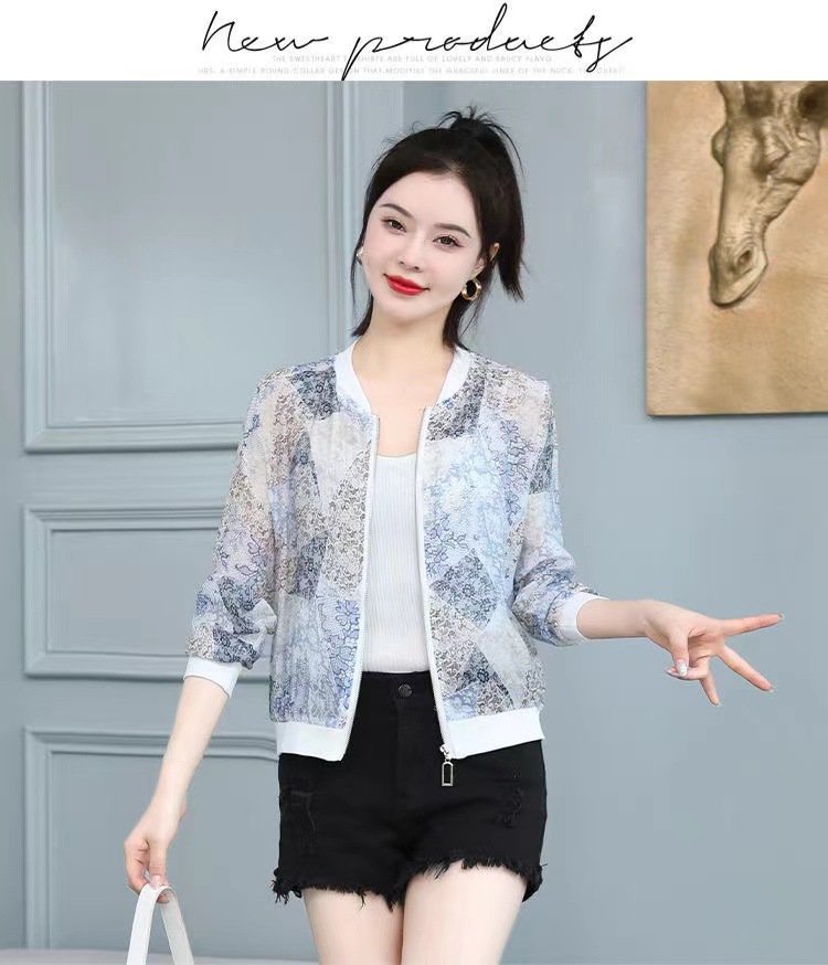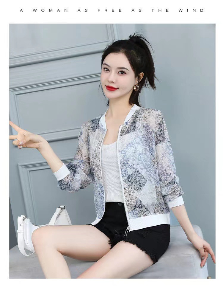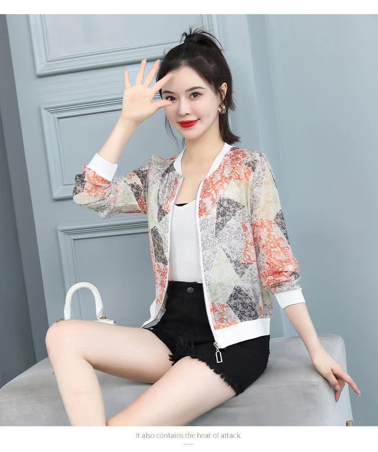 쉬폰 여성 자켓 선 스크린 2023 여름 긴 소매 새로운 민족 스타일 패션 인쇄 야구 재킷스토어 가기